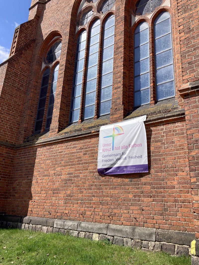 Das Motiv folgt unserem Corporate Design und basiert auf unserem gemeinsamen Nordkirchenkreuz, greift den Regenbogen als Hoffnungszeichen Gottes auf und beinhaltet den Claim: „Unser Kreuz hat alle Farben“.