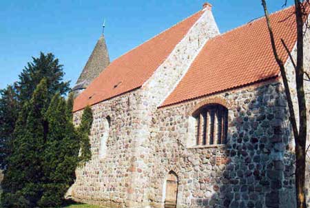Feldsteinbau aus der 1. Hälfte des 13. Jh. Eine der ältesten Kirchen in Nordvorpommern. Die Wehrkirche mit einem hölzernen Kirchturm von 1419 hat sich bis heute ihren ursprünglichen Charme erhalten. Zur Zeit sind umfangreiche Baumaßnahmen geplant oder bereits vollzogen.