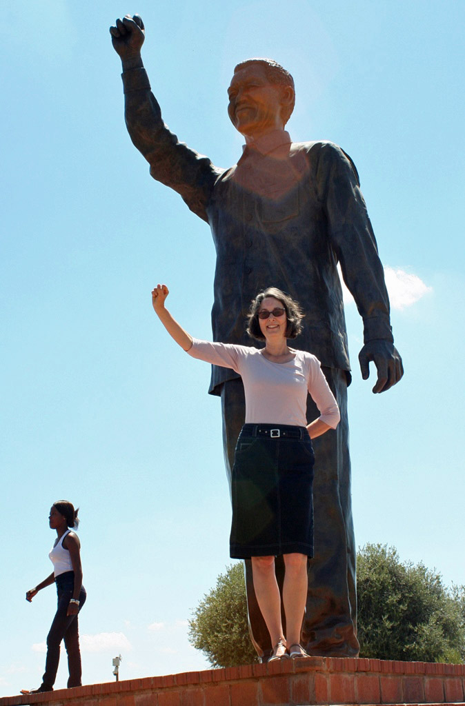 Daraufhin machten wir noch einen Ausflug auf den Naval Hill von Bloemfontein. Auf dem Berg leben Zebras, Gnus und Giraffen (2) – und wir sahen sie alle. Dass es dicht neben der Großstadt einen Wildpark gibt, ist wirklich überraschend. Und es gibt einen wunderschönen Ausblick von oben auf die Stadt Bloemfontein, gekrönt von einem überlebensgroßen Nelson Mandela. Fotomotive zu Hauf!