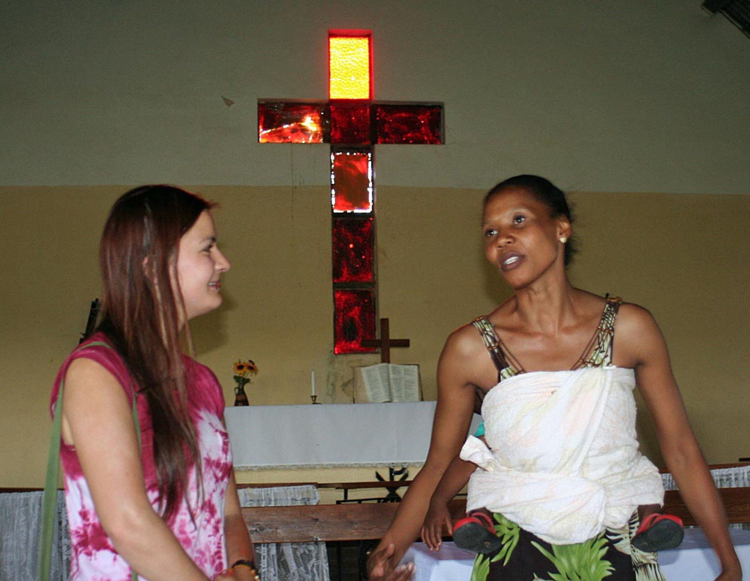 Zwei Frauen sind dabei, die in Kimberley im letzten Jahr an einem Kurs für Ehrenamtlichenqualifizierung mit Christa Göbel aus Pommern teilgenommen haben. „Das war sehr gut und hilfreich!“ – so sagen sie beide.