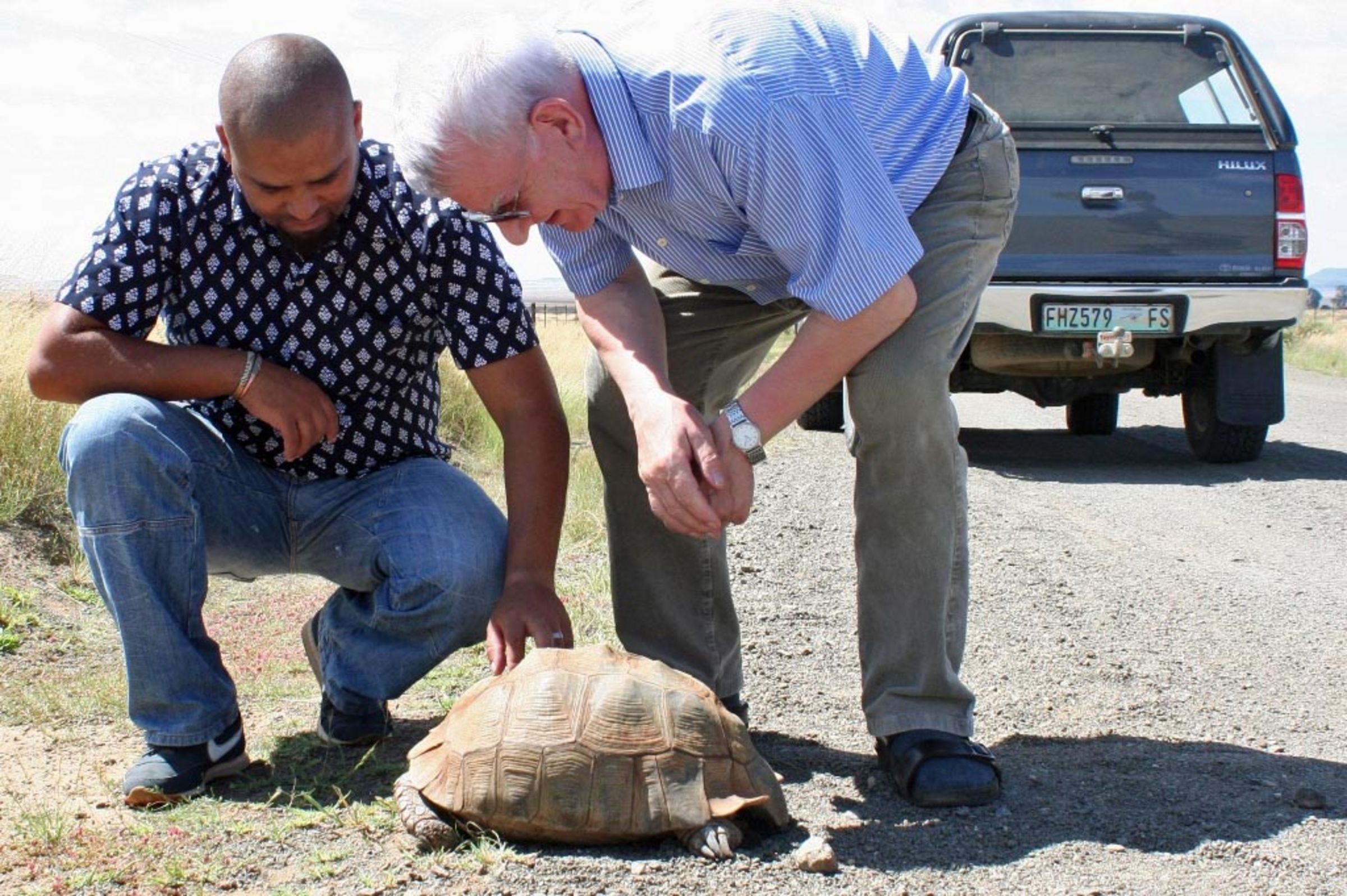 Gestärkt fuhren wir auf einer Schotterpiste (wir hatten Angst um unsere Mietwagen- aber wir begegneten einer Riesenschildkröte!) nach Adamshoop und besichtigten dort eine alte hundertjährige Kirche. Diese wurde im Jahr 2012 von den Gemeindemitgliedern und Ältesten alleine renoviert, wodurch viel Geld gespart wurde. Die Renovierung hat sich gelohnt, es ist eine sehr schöne Kirche. Ein Pfarrhaus befindet sich nebenan, in dem allerdings momentan kein Pastor wohnt. Doch die Pastorin möchte einen Raum in diesem Haus ausbauen und als „Partnerschaftsraum“ herrichten und nutzen.