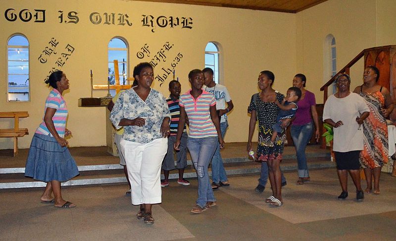 Weiter geht es zur Kutlwanong Gemeinde, die von der Mathematiklehrerin Tshegang Sello als Kirchenälteste betreut wird. Hier treffen wir ganz andere Verhältnisse an: Von den etwa 25 Gemeindemitgliedern besuchen nur zwei bis acht den Gottesdienst. Auch so kann eine afrikanische Gemeinde mit einer relativ großen Kirche aussehen, in der sich die kleine Gemeinde manchmal sicherlich verloren vorkommt. Aber ihre Tochter Direledi sagt: „Ich gehe nicht zur Kirche, weil da viele oder wenige Menschen sind, sondern weil ich da meine Sorgen und meine Ängste hinbringen kann. Und hinterher geht es mir besser. Besonders hilft mir unser Gesang.“