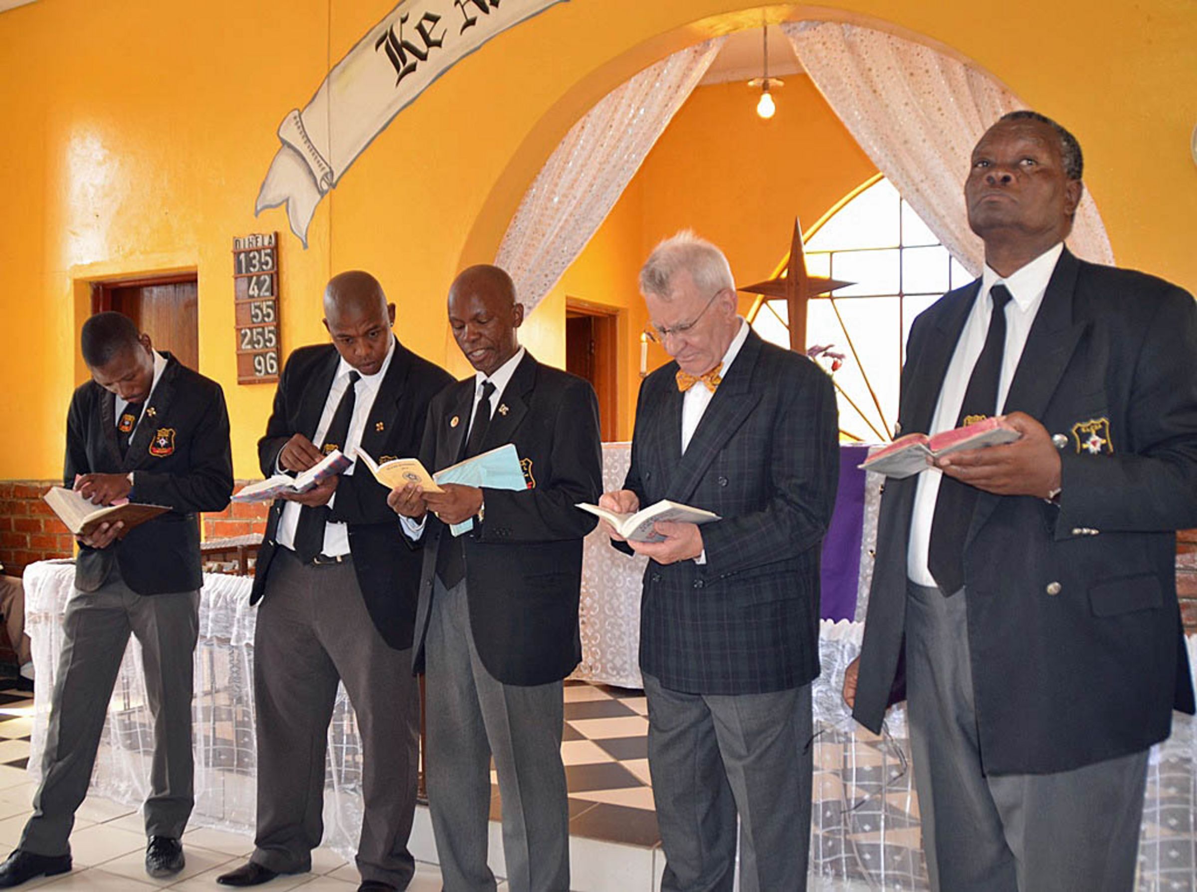 Wolfgang Schmidt fährt mit den Grimmenern nach Bloemfontein-Phahameng. Die Men’s League ist in diesem Gottesdienst stark vertreten. Sie wollen im Anschluss eine Konferenz vorbereiten. Hans-Joachim Paffenholz macht sich gut mitten unter ihnen.
