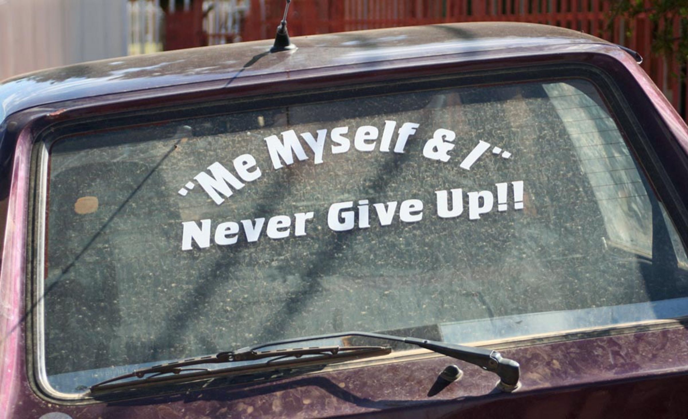 Am Anfang unserer Besprechung liest Dean Nzuza Joh. 3,16: „Also hat Gott die Welt geliebt, dass er seinen eingeborenen Sohn gab…“ Er bittet uns, etwas dazu zu sagen, und fängt selber an: „Gott macht keinen Druck. Er hält uns nicht die Pistole an die Schläfe und drückt ab, wenn wir nicht spuren. Er liebt uns so sehr, dass er keine Wahl hat. Er gibt seinen Sohn für uns.“ Da fällt mir das Auto ein mit der schönen Aufschrift: „I, me and myself – never give up.“ Und ich weiß ja, das ist wieder so ein Spruch, aber man könnte ihn auch auf Gott beziehen. I,me and myself, Vater, Sohn und Heiliger Geist – wir geben niemals auf. Nicht unsere Liebe zu den Menschen und überhaupt gar keinen Menschen geben wir auf. Niemals.