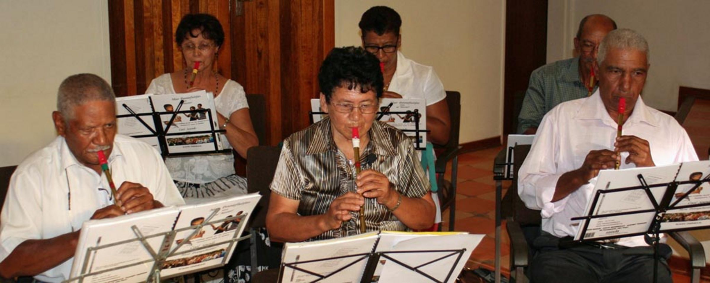 Welche Bedeutung haben nun die beiden Trillerpfeifen, die Pastor Broekstein an einer Schnur um den Hals trägt? Mit ihnen gibt er lautstark und vernehmlich den Rhythmus der Lieder und Tänze an.