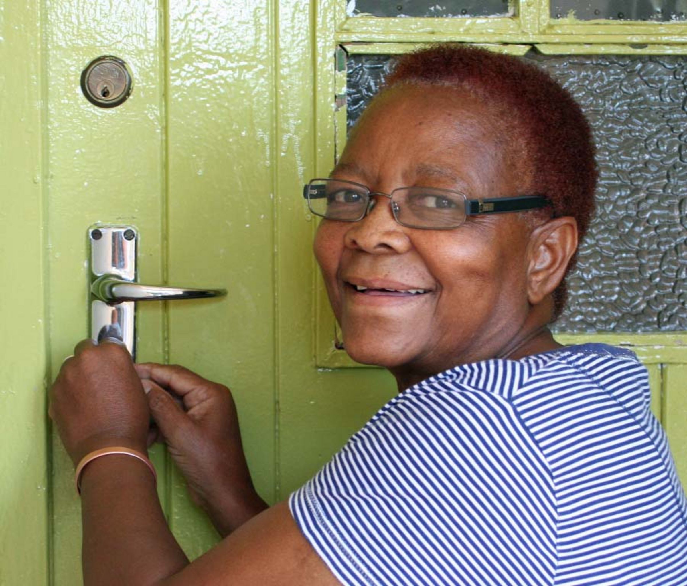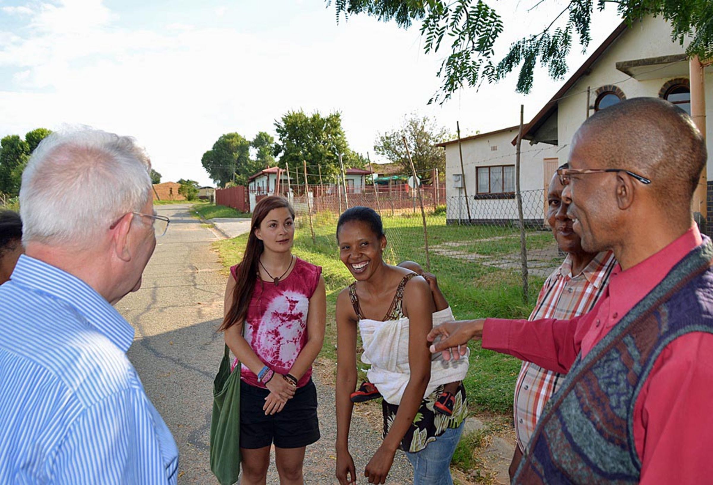 Weiter in großer Mittagshitze zur Kirchenältesten Catherine (Kate) Mokgatthe, die lange Zeit in Folge eines Autounfalls bettlägerig war und von der Gemeinde betreut wurde. Kate erzählt uns, wie es in ihrer Familie zuging, als sie noch Kind war. Am Sonntag nach dem Frühstück, also zur Kirchgangszeit, mussten alle Familienangehörigen, auch alle Kinder das Haus verlassen. Dann wurde die Tür abgeschlossen. Wer nicht zum Gottesdienst ging, hatte auf der Straße zu bleiben. Das machte niemand. Alle kamen mit. So hätte sie es auch bei ihren Kindern gehalten: Der Schlüssel zum Erfolg.