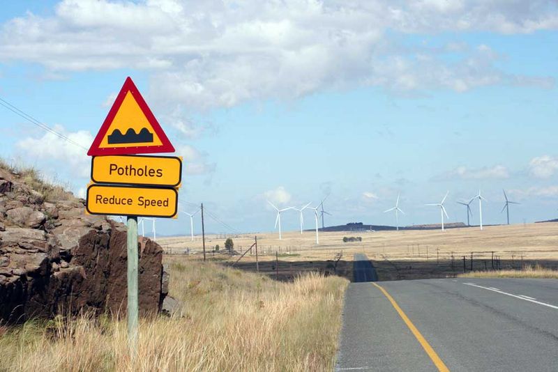 350 km sind es bis nach Stutterheim. Und immer wieder „Pottholes“, also Schlaglöcher. Ganz unverhofft, die Straße ist toll, auf einmal ist es vor Dir, das Loch. Wie im richtigen Leben! Aber es gelingt mir, alle zu umkurven. Das ist übrigens nicht wie im richtigen Leben…