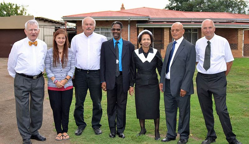 Nach einem herzlichen Abschied fuhren wir 3 Stunden zu unserem nächsten Ziel – zur Goldfields-Parish in Welkom. Der Name des Ortes stammt aus der Umgebung. Bis vor kurzen wurde dort in großen Goldminen gearbeitet, welche viel Geld einbrachten. Doch jetzt findet man kaum noch Gold. In der Kirche wurden wir schon mit einem Programm erwartet, welches vorsah, in 4 Kirchen in der Nähe zu fahren und einige Besuche zu machen. Zunächst fuhren wir in die Meloding-Gemeinde nach Victoria, besuchten die Kirche und lernten einige liebe Bewohner kennen, die uns mit offenen Armen empfingen. Unter anderem besuchten wir eine 80jährige Frau, die gerade aus dem Hospital entlassen wurde. Wir sangen und beteten für sie. Ich fand es sehr schön, mit den Menschen in Kontakt zu kommen. Da unsere Gastgeber unseren Hunger spürten, fuhren wir zu einer Pizzeria, was mich als Vegetarierin sehr glücklich stimmte (die letzten Tage waren voll von Fleischmahlzeiten). Leider bekam das Essen nicht jedem, so dass wir unsere weiteren Besuche auf den nächsten Tag verlegen mussten. Doch dadurch hatten wir noch Zeit, um gemeinsam zusammenzusitzen und uns über Deutschland und Südafrika auszutauschen. Es war ein sehr vielfältiger Tag.