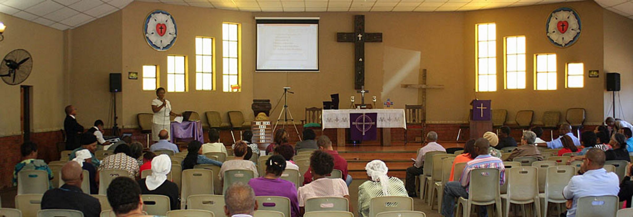 Ich bin in Bloemfontein-Heidedal in der Petruskirche. Sie ist riesig, bietet 300 Menschen Sitzplätze, wurde erst vor drei Jahren eingeweiht. Als der Gottesdienst begonnen hat, zähle ich 150 Menschen, und das, obwohl nach der letzten Zählung nur rund 400 Menschen zur Gemeinde gehören sollen. „Heute sind wir nicht so viele,“ sagt Anni Nelson, die ich in der Tür treffe. „Wenn Abendmahlgottesdienst gefeiert wird, dann ist die Kirche ganz voll.“ Anni Nelson freut sich, mich zu sehen. 2011 war sie in Greifswald zum Kirchentag dabei. „Gut, dass Du da bist,“ sagt sie. „Sonst wäre ich heute nämlich mit der Predigt dran gewesen.“