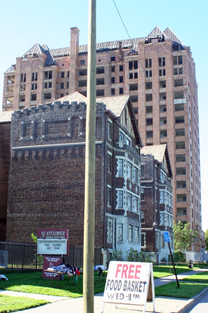 „Have a nice trip“, hieß es heute Morgen als wir uns mit Marcia Meabon nach Taylor, einem Vorort von Detroit aufmachten. Rund 5 Millionen Menschen leben in der Metropolregion von Detroit. Nach Taylor lud uns Pastor Geoffrey Drutchas in die St. Pauls-Gemeinde der United Church of Christ ein. Er erzählte uns, wie die Gemeinde im 19. Jahrhundert aus deutschsprachigen Siedlern, die dorthin vor den Napoleonischen Kriegen flohen, entstanden ist. In diesem Vorort, wo heute Fastfood-Restaurants, Tankstellen und Vorort-Shops zu sehen sind, lebten die Menschen bis zum Zweiten Weltkrieg von der Landwirtschaft. Bis zum Ersten Weltkrieg war die Gemeinde mehrheitlich deutsch-sprachig, erst danach wurde Englisch zur Standardsprache. „Ich bin der erste Pastor in dieser Gemeinde, der kein Deutsch mehr spricht“, sagt Geoffrey Drutchas. - Im Saal der Kirche entdecken wir viele blaue Kisten. Decken sind darin, Laken, Kissen, Handtücher. Auch ein großer Stapel Matratzen steht daneben. Die Gemeinde beteiligt sich wie 54 andere Detroiter Kirchen am rollenden Obdachlosenheim. Ab morgen Abend werden für eine Woche obdachlose Menschen in dieser Kirche ein Nachtlager finden – und auch etwas zu essen. Dann ist die nächste Kirche dran, erklärt uns Eileen Drutchas, die Frau des Pastors.