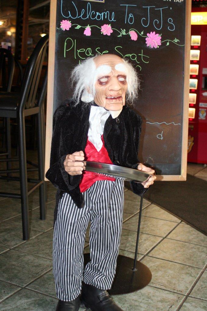 Danach treffen wir uns beim lutherischen Gemeindehaus. Der „L.A.RC.C-Covenant“ (nämlich Geistliche der lutherischen, anglikanischen, römisch-katholischen und UCC-Gemeinden) kommt jeden Dienstag von 11-12 Uhr zusammen, um über den Predigttext des kommenden Sonntags zu reden. Jede Woche! Heute geht es um die Witwe, die einem ungerechten Richter so lange auf die Nerven geht, bis er endlich Recht spricht, um seine Ruhe zu haben. Ich erzähle die Kurzgeschichte eines DDR-Schriftstellers von einem DDR-Bürger, der ein Anliegen hat und im Amt bis zu der Tür geht, an die er klopfen müsste, um zu dem Beamten zu gelangen, der ihm vielleicht helfen würde – oder auch nicht. Und wie er da vor der Tür steht und steht und steht – und schließlich wieder los geht, ohne angeklopft zu haben. Seine Angst war größer als sein Mut. Der anglikanische Kollege sagt: So wie die Witwe sind manche Mitglieder meiner Gemeinde, die attackieren mich manchmal ganz schön! Wir stellen fest, dass solche Menschen sehr wichtig sind, damit auch ihre Perspektive in den Blick gerät – und damit sich Dinge ändern, die sich ändern müssen. Es ist ein ganz dichtes Gespräch, und eine Stunde ist viel zu kurz. Gut, dass wir bei „J.J.“, wo wir am Eingang freundlich durch einen kleinen Gästeschreck begrüßt werden, das Gespräch noch weiterführen können.