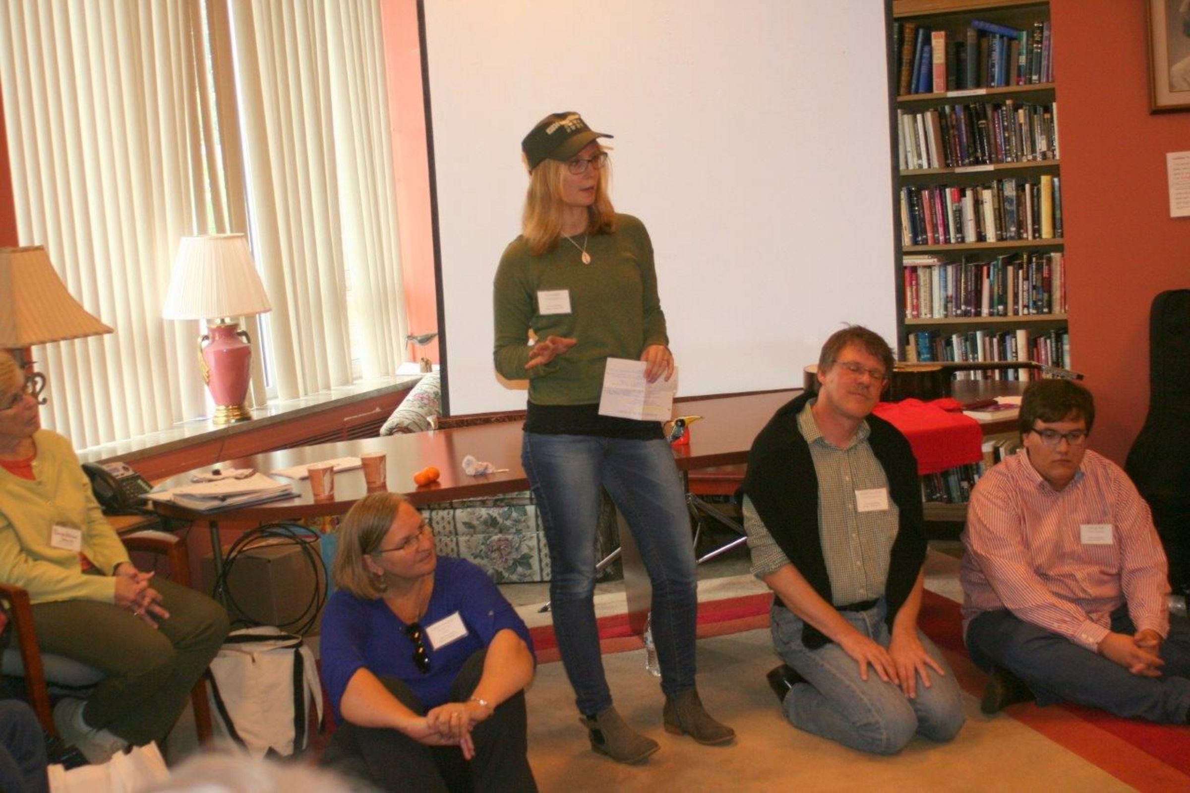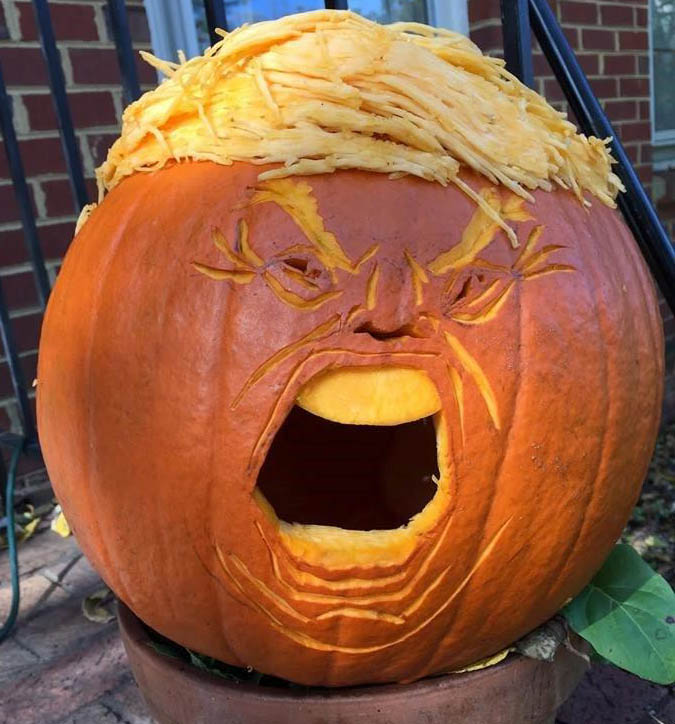Nach dem Mittag geht es nach Lansing zu den „St. Vincent Catholic Charities“. Dort stellt uns Judy Harris ihrer Arbeitsgruppe vor, die in der Flüchtlingsarbeit tätig ist. Die UCC unterstützt dieses Projekt finanziell. In einer Gesprächsrunde lernen wir viele verschiedene Leute und ihre Arbeit kennen. Die Gruppe kümmert sich um ankommende Flüchtlinge und hilft ihnen die Sprache zu lernen, eine Wohnung und einen Arbeitsplatz zu finden. Judy erzählt uns, dass in letzter Zeit sehr viele Flüchtlinge angekommen sind und das aktuelle Ziel ist, diese nach drei Monaten in die Selbstständigkeit zu entlassen. Sie sagt das Wichtigste ist, dass sie schnell einen Job finden und für sich selbst sorgen können, dann sind die Ängste in der Bevölkerung auch nicht so groß. Für die Stadt Lansing sind die ankommenden Leute ein großer Segen. Die Wirtschaft wird gestärkt, und Schulen, die sonst geschlossen werden müssten können weiter bestehen. Natürlich gibt es auch hier Leute, die Angst haben und Flüchtlinge nicht aufnehmen wollen. Sie werden bestärkt durch Trump, der sagt, dass Flüchtlinge den Amerikanern die Arbeitsplätze wegnehmen. Doch nach den Tagen, an denen solche Reden im TV und Radio zu sehen und zu hören sind, gibt es Leute, die sich bei Judy melden und als Freiwillige helfen wollen. Spannend ist, dass in der Arbeitsgruppe auch Leute tätig sind, die selbst als Flüchtlinge in die USA gekommen sind. Sie kommen aus Vietnam, dem Sudan, Burundi und Bhutan. Sie sind für die Organisation sehr wertvoll, da sie die Erfahrungen der ankommenden Flüchtlinge nachvollziehen können und Sprachbarrieren aus dem Weg räumen. Judy Harris erzählt, dass zurzeit daran gearbeitet wird die Menschen mit Wintersachen auszustatten: Mäntel, Stiefel und Handschuhe. Vor allem die afrikanischen Flüchtlinge steigen barfuß oder in Flipflops aus dem Flugzeug. Das ist für den Winter hier keine passende Kleidung. Letztes Jahr gab es eine Woche, in der die Temperatur nicht über -20 °C gestiegen ist. - Abend sitzen wir noch in unserem Haus zusammen. Und plötzlich lachen wir, worüber wir seit Tagen lachen, seit wir Ihn entdeckt haben - den Pumpkin (Kürbis), aus dem ein Trumpkin wurde.