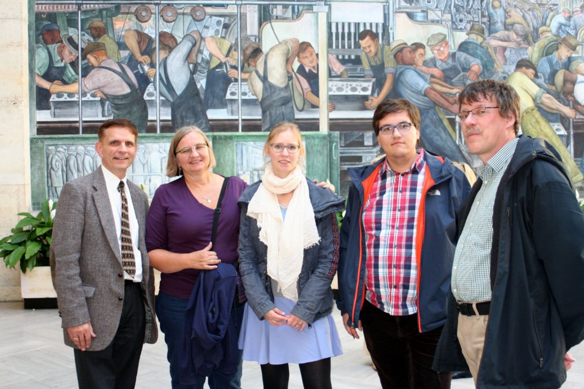 In diesen Tagen spielt natürlich auch immer Tagespolitik eine Rolle. Am 8. November finden die Präsidentschaftswahlen statt – ein Aufhänger, um über Politik beim Mittagessen zu reden. Wir haben erfahren, dass Michigan der erste Bundesstaat der USA war, der 1834 die Todesstrafe abgeschafft hat. Persönliche Gespräche mit den Menschen, denen wir hier begegnen, lassen manche Vorurteile gegenüber Amerikanern zerbröckeln. In der Innenstadt (Down Town) besichtigen wir ein Denkmal für die Arbeiterinnen und Arbeiter, die Detroit aufgebaut haben. Arbeit scheint für Amerikaner ein großes Identifikationssymbol zu sein. An diesem Denkmal lese ich: „Die Errungenschaften der Arbeit sind Amerikas Stärke.“