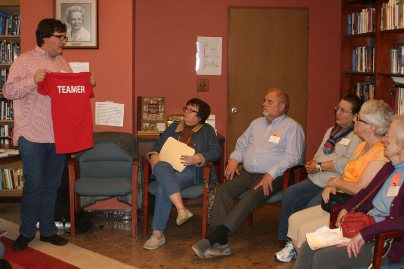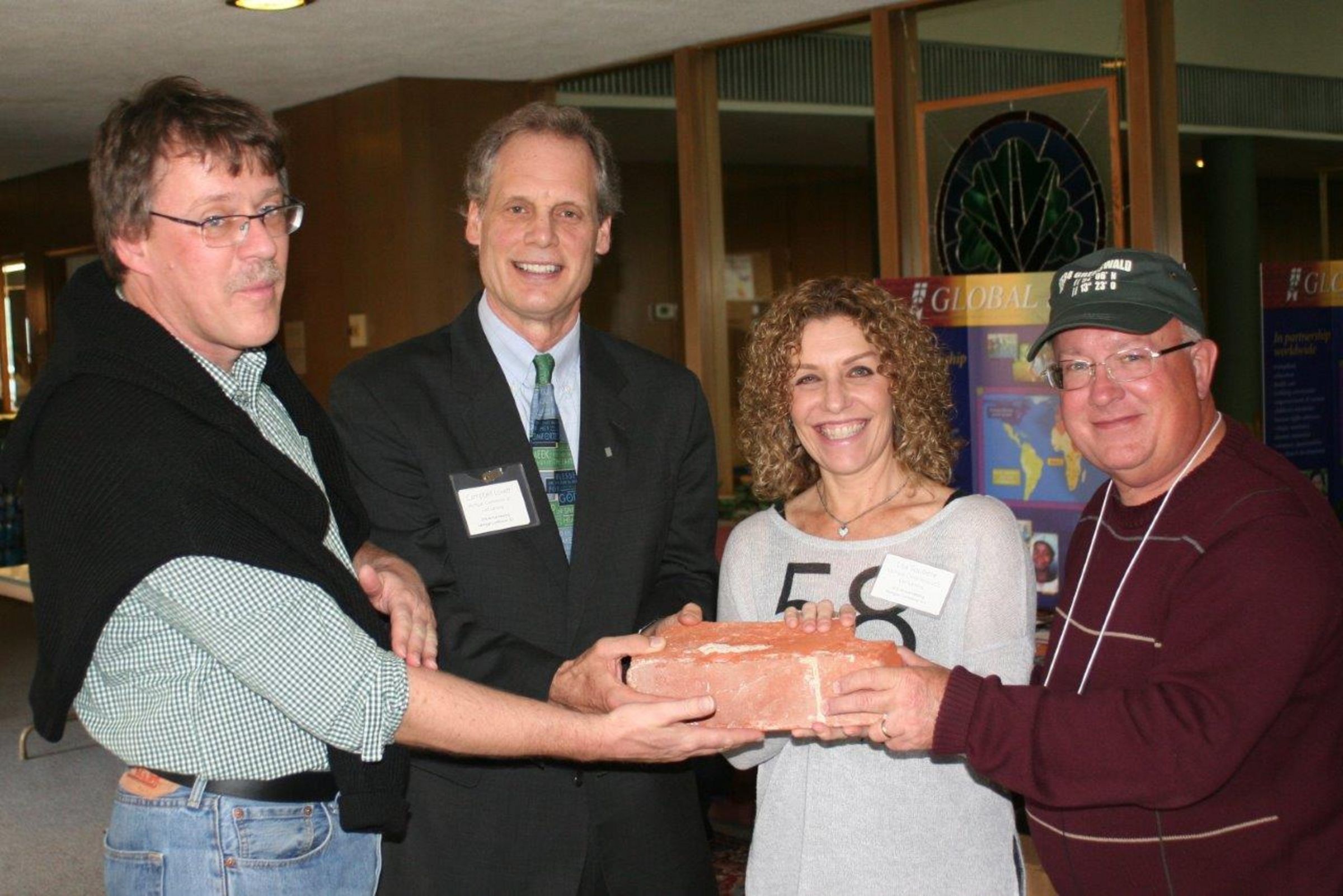 Am Nachmittag verschenken wir unsere Ausstellungsstücke. Conference Minister Dr. Campbell Lovett bekommt den 6,5 kg schweren Backstein, Manager Bob Heisler das Greifswald-Basecap und Liza Soulliere (beide aus dem head office der UCC Michigan) einen Playmobil-Luther.