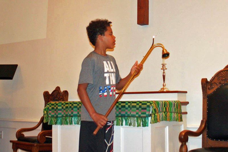 Es gab einen Vater, der hatte sieben Söhne, die ständig in Streit miteinander gerieten. Eines Tages rief er sie zu sich und sagte, dass derjenige, der ein Bündel mit sieben Zweigen zerbrechen könne, 100 Dollar bekäme. Niemand schaffte es, die Zweige können nur einzeln zerbrochen werden. Diese Geschichte lässt sich auf die Gesellschaft und die Kirche übertragen. Gemeinsam ist man stark und kann auch schwere Zeiten und auseinandergehende Meinungen überstehen. Matthias ruft uns dazu auf, niemals aufzugeben, egal wie schwer die Aufgaben sind, vor denen wir stehen. Am Ende des Gottesdienstes verteilen wir die letzten Notizblöcke und Landkarten. Bei Kaffee und Bananenbrot haben wir noch die Möglichkeit, Gespräche mit den Gemeindemitgliedern zu führen. Anschließend holen Conrad und Detlef uns von der Webster Church ab und wir können uns noch beim gemeinsamen Lunch vor der Abfahrt stärken.