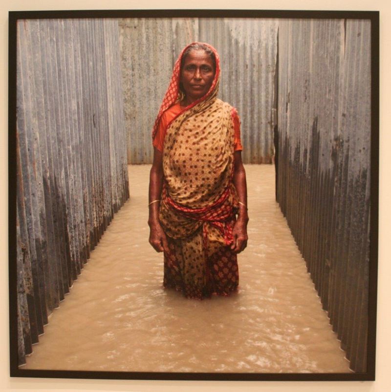 Nach dem Frühstück holen wir dort Campbell Lovett ab und starten in einen weiteren Tag voller neuer Erfahrungen. Der erste Weg geht zu dem Campus der Michigan State University. Hier sind etwa 50.000 Studenten eingeschrieben. Der Campus ist 2x2 Meilen groß und wirkt in sich wie eine eigene Stadt. Es gibt sogar einen Teil, in dem etwas Landwirtschaft betrieben wird und z.B. Eis von Campuseigenen Kühen hergestellt wird. Es ist auffällig, dass viele Studenten mit dem Auto unterwegs sind, es gibt sogar extra Parkhäuser auf dem Gelände. Viele der Gebäude sind aus Backstein, außer das „Eli and Edythe Broad Art Museum“, welches wir zu Beginn besuchen. Ausstellung des südafrikanischen Künstlers Gideon Mendel. Auf einem Foto, es wirkt schon vergilbt und alt, ist ein kleiner Junge zu sehen. Neben ihm steht eine weitere Person, vielleicht sein Vater, dies ist aber nicht genau zu erkennen. Die linke Hälfte des Bildes ist verschmiert, die Farben des Fotos wurden von Wasser weggewischt. Dieser Teil des Museum thematisiert ein aktuelles klimatisches Problem: Flut, Überschwemmung, Hochwasser. Es werden Vergrößerungen von Bildern gezeigt, die in den Fluten gefunden wurden. Das Bild des kleinen Jungens stammt aus Deggendorf, in Bayern, wo 2013 ein Donauhochwasser über die Lande zog. Wir sehen weitere, teilweise schockierende Bilder, von zerstörten Siedlungen, Kindern, die in den Trümmern Ball spielen und Helfern, die Leichensäcke auf einen LKW laden. Gerade in armen Regionen, Nigeria oder den Philippinen, sorgen solche Naturkatastrophen für viele Probleme. Einige Flutopfer hat der Fotograf in ihr überflutetes Haus begleitet und sie dort porträtiert.