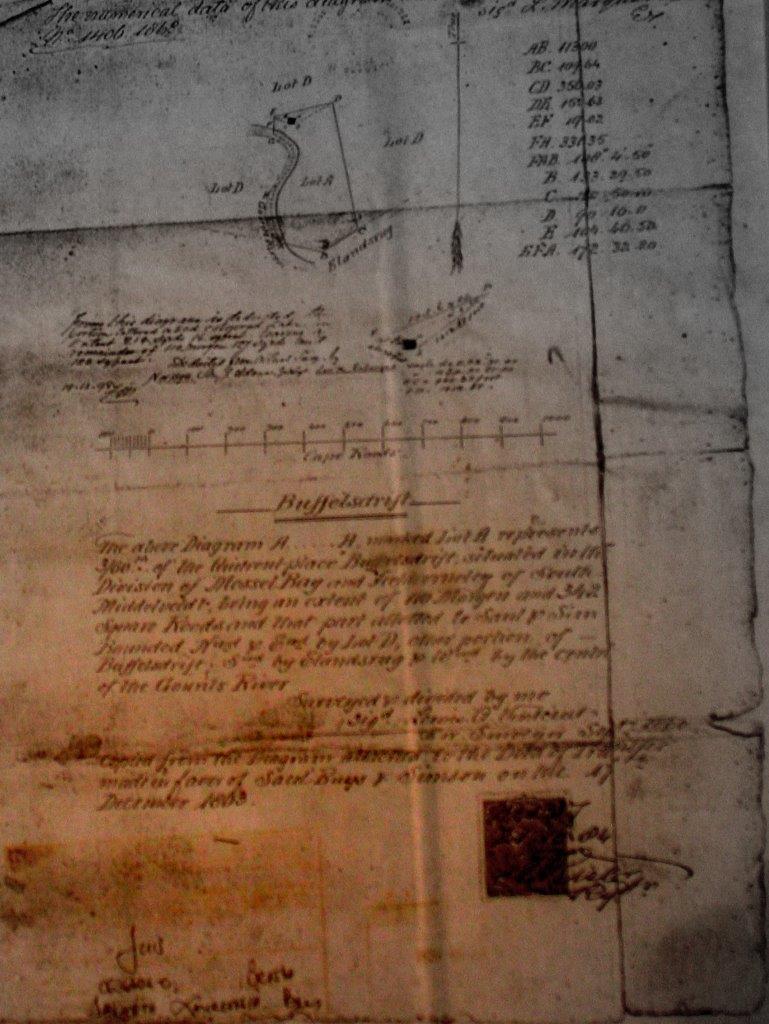 Der Gesang der Gemeinde ist einfach überwältigend. Auch der Chor singt. Dann findet die Wahl der sechs Kirchenältesten statt. Aus der Zettelbox werden viele Zettel vorgelesen, die aus der Gemeinde in den letzten Tagen eingeworfen wurden. Aber am Ende sind es trotzdem nur vier Namen, die immer wieder fallen. Brandt ist unzufrieden. Sein Gesicht hellt sich auf, als vier weitere Namen aus der Gemeinde zugerufen werden. Ein junger Mann schreibt sie sorgsam an die Tafel neben dem Altar. Dann wird abgestimmt. Alle sollen die zwei Namen aufschreiben, die sie nicht in diesem Amt haben wollen – denn es werden ja nur sechs gebraucht. Ich bin irritiert. Muss das nicht sehr frustrierend sein für die Verlierer, wenn sie sehen: So viele wollen mich nicht haben? Andererseits: Ist es für den Verlierer nicht in jedem Fall traurig? Ich frage Debbie, was sie davon hält. Sie lacht. Und sagt, was Brandt hinterher bestätigt: „Bestimmt will er Zeit sparen! Sechs Ja einzutragen dauert dreimal so lange wie zweimal Nein – und das Ergebnis ist dasselbe!“ Dann wird der Vorsitzende des Gemeindekirchenrates durch die Gemeinde gewählt. Er bekommt fast alle Stimmen, und er heißt Collin Buis. Wie sonst! Vor dem Mittagessen bei einer Familie in Buis Plaas betrachten wir fasziniert eine alte Urkunde. Sie stammt aus dem Dezember 1803 und hält fest, dass dieser Platz der Familie Buis gehört. Sogar während der Apartheidzeit hat diese Urkunde die Familie geschützt. Sie wurde nicht vertrieben.