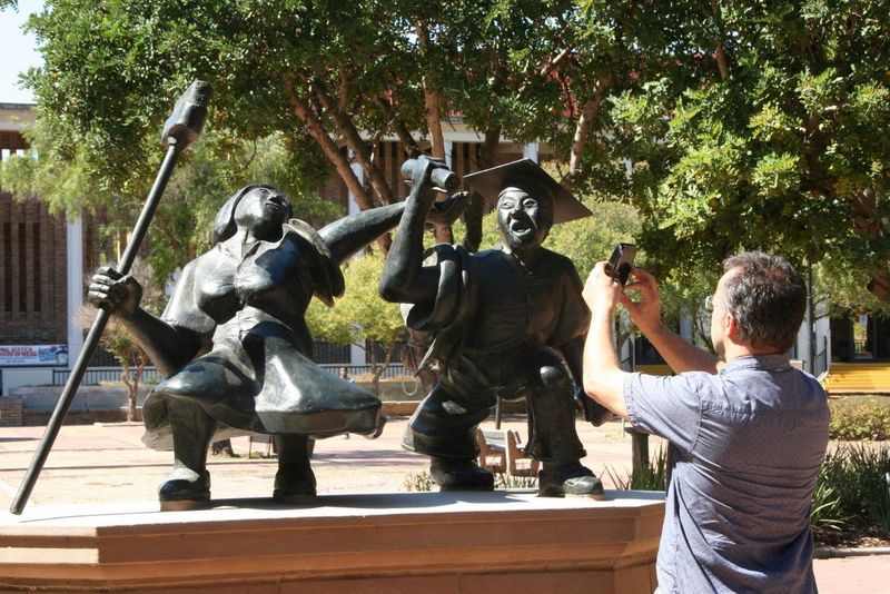 Von I themba Labantu ging es zu einem Besuch in die Theologische Fakultät der Universität Western Cape. Auf dem Innenhof begrüßt uns die preisgekrönte Skulptur des Künstlers David Hlogwane: „Ende und Anfang“ Sie zeigt eine Mutter (Reinigungskraft, mit Besen in der Hand) und einen jungen Mann mit Doktorhut – ihren Sohn. Beide zeigen ihre unbändige Freude darüber, dass dieser Schritt in ein neues Leben gelungen ist. Was Ziel des Besuchs in der Fakultät sein sollte, war uns dagegen nicht so ganz klar. Aber der Partnerkirche war es wichtig. In einem Gespräch mit zwei Dozenten der Uni wurde deutlich, dass die Partnerkirche nach einem Ort sucht, an dem ihre künftigen Pastorinnen und Pastoren ihr Theologiestudium absolvieren können. Bischof Manong und seine Mitarbeiter ließen sich daher Programm und Kosten erläutern. Ob sie sich erhoffen, dass die deutschen Partner sich für eine Unterstützung erwärmen können? Anders als der beeindruckende Besuch am Morgen ließ uns dieser Ausflug etwas ratlos zurück.