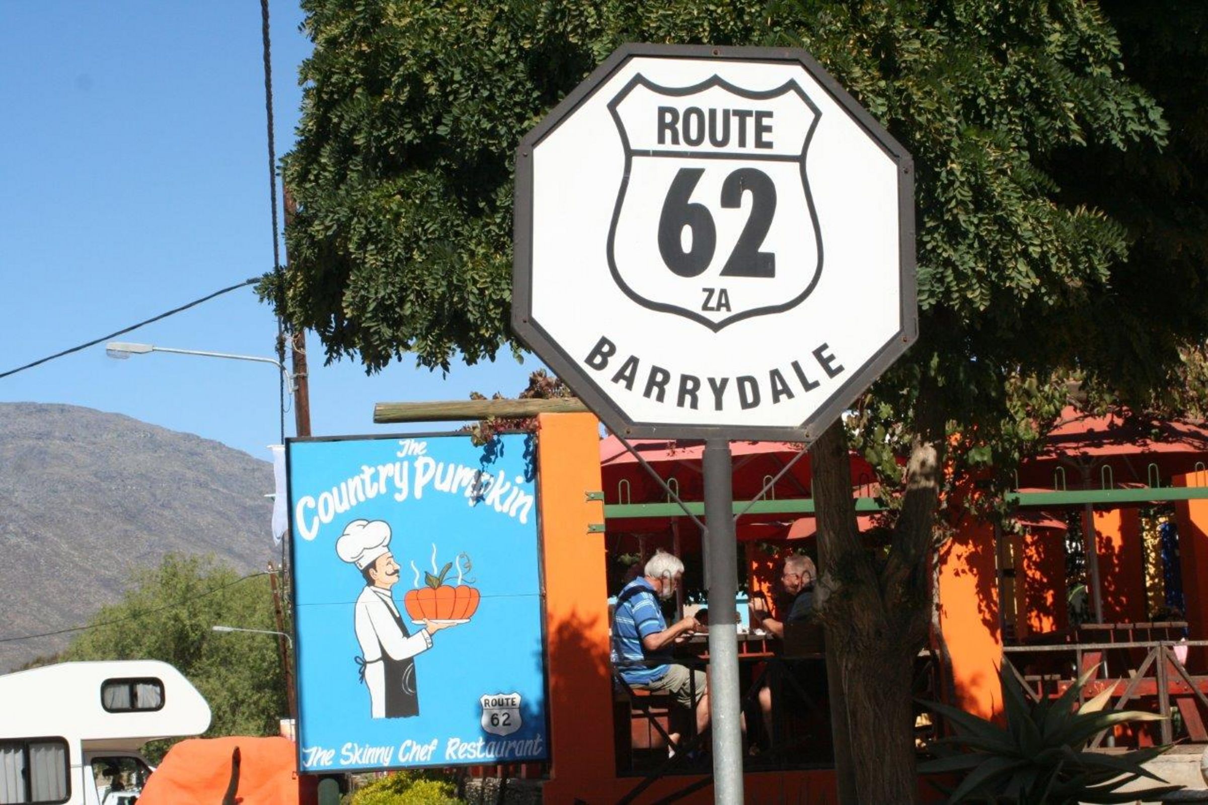 In Montagu plötzlich eine Straßensperre. Roadwork – Straßenarbeiten. Erst 13.00 Uhr wird die Fahrt wieder freigegeben. Zum Glück gibt es gleich daneben „Die Kloof Padstal Route 62 Farmstall & Restaurant“ - eine Gaststätte mit einem gewaltigen Namen, schönen Garten, alten Bäumen, sehr gutem Essen. Nachdem anderthalb Stunden später der Gegenverkehr sich über die Fahrbahn gewälzt hat, fünfzehn Minuten lang, dürfen wir auch endlich starten. Aber nur für kurze Zeit. Dann stehen wir fast eine halbe Stunde. Die Straßenarbeiterin im roten Arbeitsanzug mit der Fahne in der Hand muss den ganzen Tag dort stehen in der Hitze. Wie sie sich wohl fühlt, wenn sie wütende, gleichgültige, müde, neugierige Menschen mit ihrer Fahne weiterwinkt? Ob es ihr Freude macht oder sich wenigstens lohnt? - Auf den letzten Kilometern vor Worcester wird es immer grüner. Obstplantagen, Weinberge. Erntekolonnen. Der Herbst hat begonnen. Erntezeit – trotz aller Trockenheit.