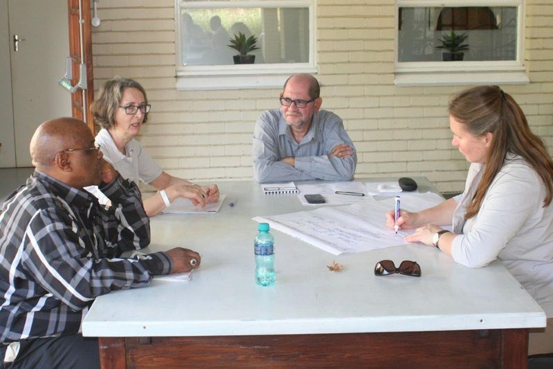 Wer sitzt hier in der Runde? Das war heute das erste Thema bei der Begegnung zwischen der Nordkirche und der Kap Oranje Diözese. Schon eine Vorstellungsrunde machte große Unterschiede zwischen den Teilnehmenden deutlich: Ein ehemaliger Schauspieler stand neben PastorInnen, einem Physiker und einer Postbotin. Die Altersspanne lag zwischen Mitte 30 und Mitte 60 und die Erwartungen zwischen Kennenlernen und neuen gemeinsamen Erfahrungen bis hin zu einer Zukunftsvision für die norddeutsch-südafrikanische Partnerschaft.