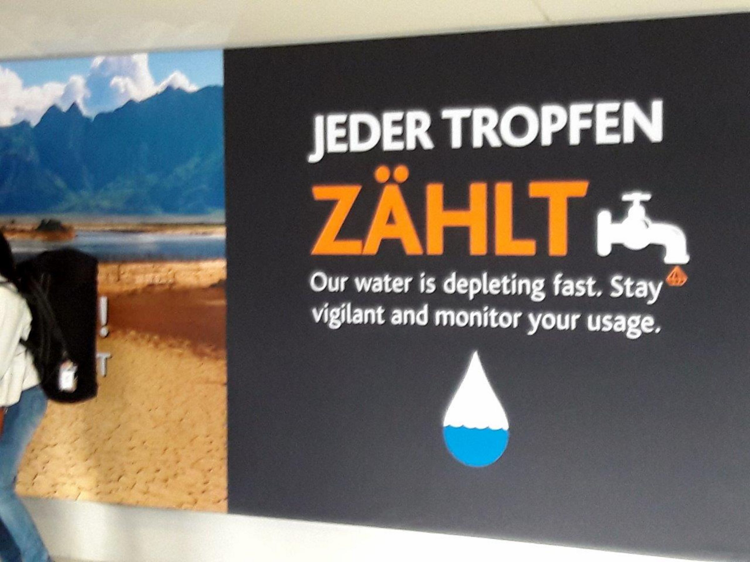 Wasser. Jeder Tropfen zählt. So begrüßt der Flughafen Kapstadt seine ankommenden Gäste. Auf Englisch, Afrikaans - und sogar auf Deutsch. Kein Regen seit langer Zeit, die Staudämme fast leer, die Stadt an der Grenze zum Wassernotstand. Im April könnten die Wasserleitungen abgeschaltet werden. Dann bekommt jeder Einwohner das Wasser rationiert.