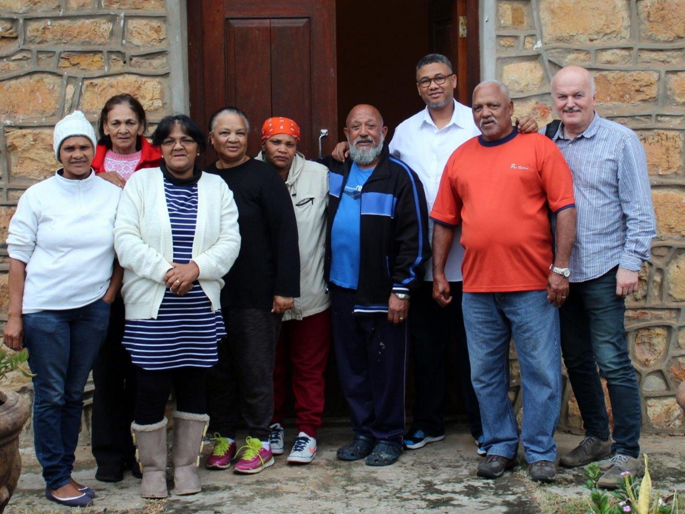 Wie funktioniert unter solchen Umständen Gemeindeleben? Ganz einfach: Jede/r Kirchenälteste zählt! Kaum in Riversdale angekommen, sind wir zuerst nach Albertinia in Grispes Filialgemeinde gefahren. Dort werden wir schon in der Kirche erwartet. Es gibt Gespräche, Kaffee und Kuchen, ein Lied, ein Gebet. Sieben Kirchenälteste sind gerade neu gewählt worden und freuen sich über den Besuch aus Pommern. Sie erzählen: „Jeden Sonntag haben wir hier Gottesdienst. Nur einmal im Monat kommt Dean Grispe, um mit uns Abendmahl zu feiern. Alle anderen Gottesdienste gestalten wir allein!“ Sechs der sieben Ältesten haben einen Predigtauftrag und wechseln sich ab. Sie sagen das ohne besonderen Stolz. Es ist einfach ganz normal.
