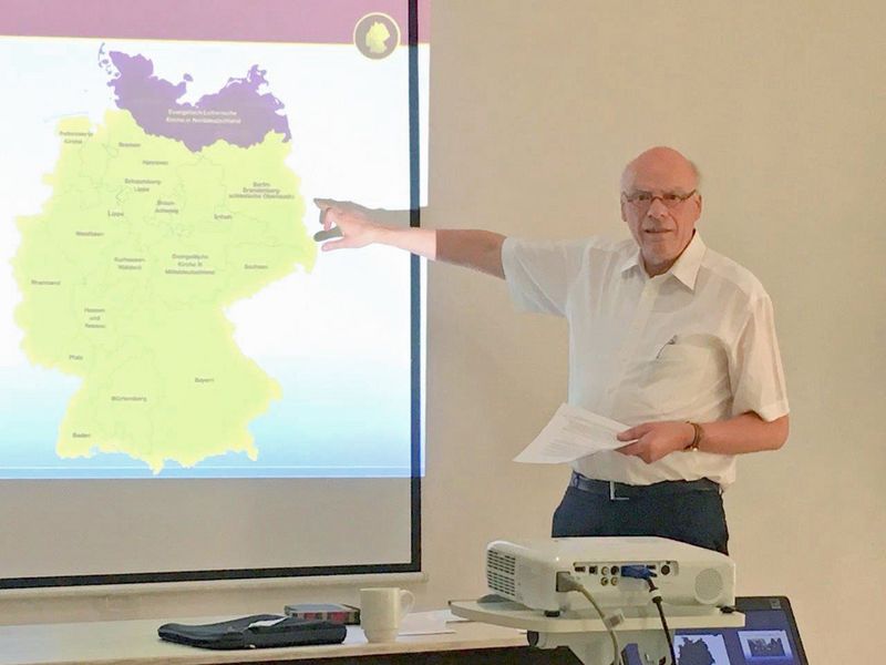 In zwei ausführlichen Vorträgen stellten dann Bischof Manong und Landesbischof Ulrich ihre jeweiligen Kirchen vor. In großer Offenheit beschrieben beide Bischöfe ihre jeweiligen Kirchen mit ihrem geschichtlichen Hintergrund, wichtigen Traditionen, Chancen und schwierigen Problemen. Schon die Geografie stellt Kap Oranje Diözese vor große Herausforderungen. Sie besteht aus sechs Kirchenkreisen mit jeweils mehreren Gemeinden und Pfarrstellen, die auf die gesamte westliche Hälfte Südafrikas verteilt sind und zum Teil hunderte von Kilometern voneinander entfernt sind. Enorme Reisekosten und eine eingeschränkte direkte Face-to-Face-Kommunikation sind eine natürliche Folge davon. Ein weiteres Problem stellt die schwierige finanzielle Lage der Kirche dar. Nur ein Teil der Pastorinnen und Pastoren wird bezahlt und arbeitet in Vollzeit. Andere gehen als Self-supporting-Pastors neben ihrer Tätigkeit in der Gemeinde einem normalen Broterwerb nach. Hinzu kommt eine Konkurrenz zwischen den Gemeinden, die Pastoren unterschiedlich gut bezahlen können. Verschärft wird die finanzielle Lage für die Gesamtkirche darüber hinaus noch durch Konflikte und die daraus z. T. resultierende Weigerung einiger Gemeinden, ihren vorgesehenen Beitrag an die Gesamtkirche zu leisten.
