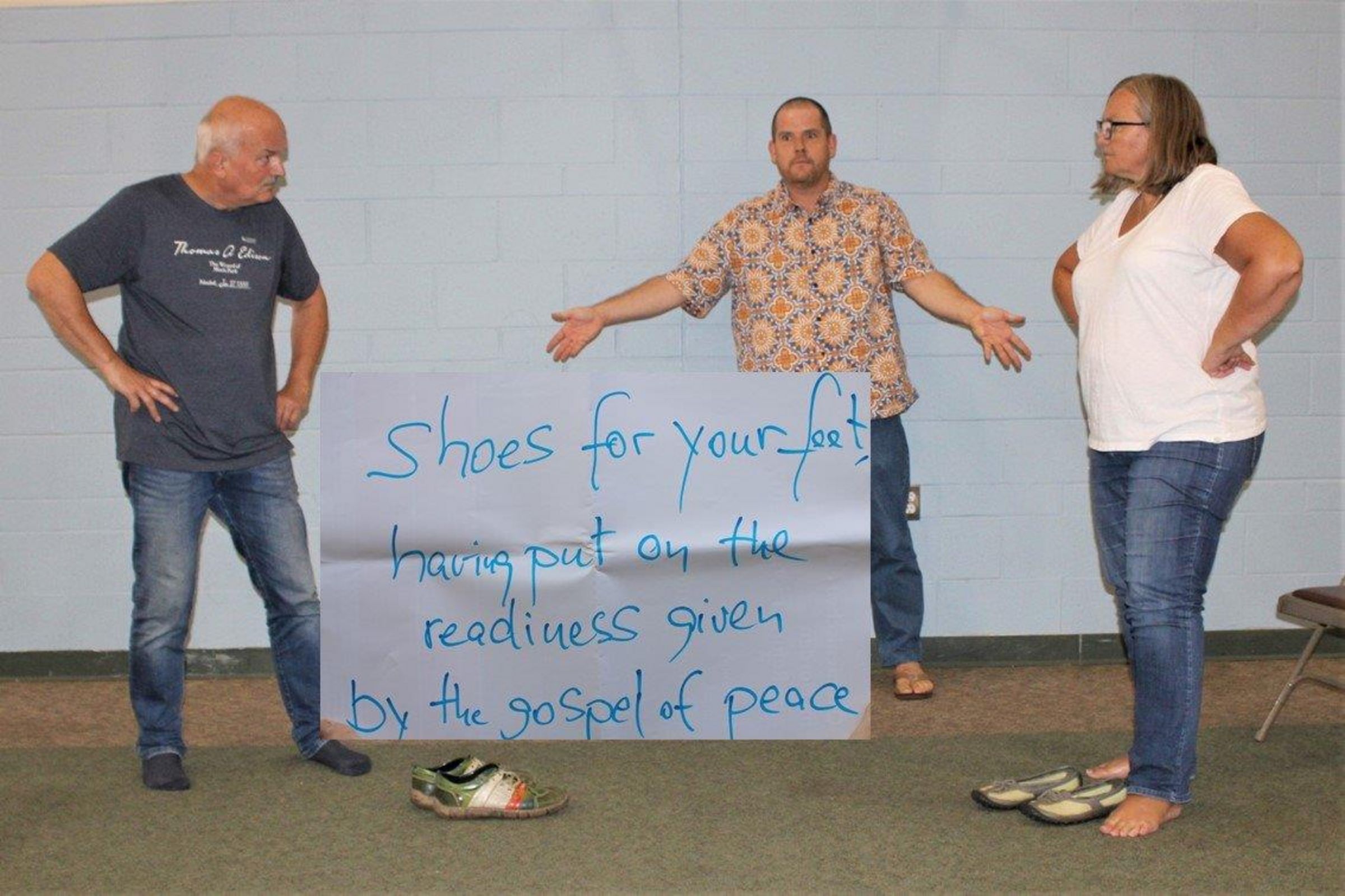 Den Abschluss des inhaltlichen Teiles bildete eine Bibelarbeit und -pantomime, ebenfalls in Kleingruppen, für die wir uns mit Eph. 6, 10-18 beschäftigten.