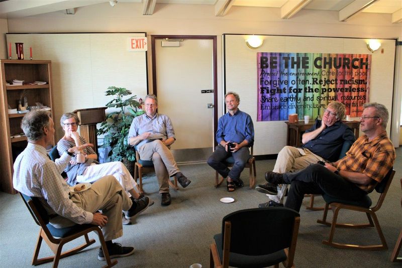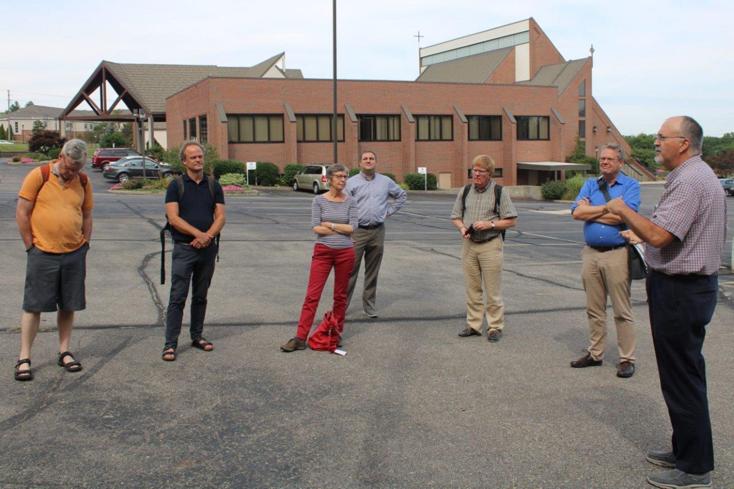 Im Anschluss fahren wir zum zentralen Verwaltungsgebäude der UCC Michigan. Und reiben uns erst einmal die Augen: Wir stehen vor einem unscheinbaren Bau, der nicht mehr als zehn Büros fasst. Das ist hier also das Landeskirchenamt?? Beim intensiven Gespräch mit Campbell Lovett wird schnell klar, warum diese Zentrale so überschaubar ist. Die UCC ist kongregationalistisch aufgebaut. Und der Kongregationalismus mit Wurzeln in Großbritannien heißt: Jede Gemeinde ist selbständig, finanziell und geistlich, wählt ihre Pastorin oder ihren Pastor selbst und verantwortet alle eigenen Angelegenheiten; die Zentrale ist lediglich Impulsgeber dieser Kirche. Die UCC hat eine reiche Fusionsgeschichte hinter sich, aus ursprünglich deutschen reformierten und unierten Kirchen, Schweizer Reformierten, englischen Kongregationalisten, einigen Methodisten und weiteren kirchlichen Gemeinschaften. In den USA kommen verschiedenste europäische Traditionen zusammen und ergeben ein unüberschaubar buntes Bild.