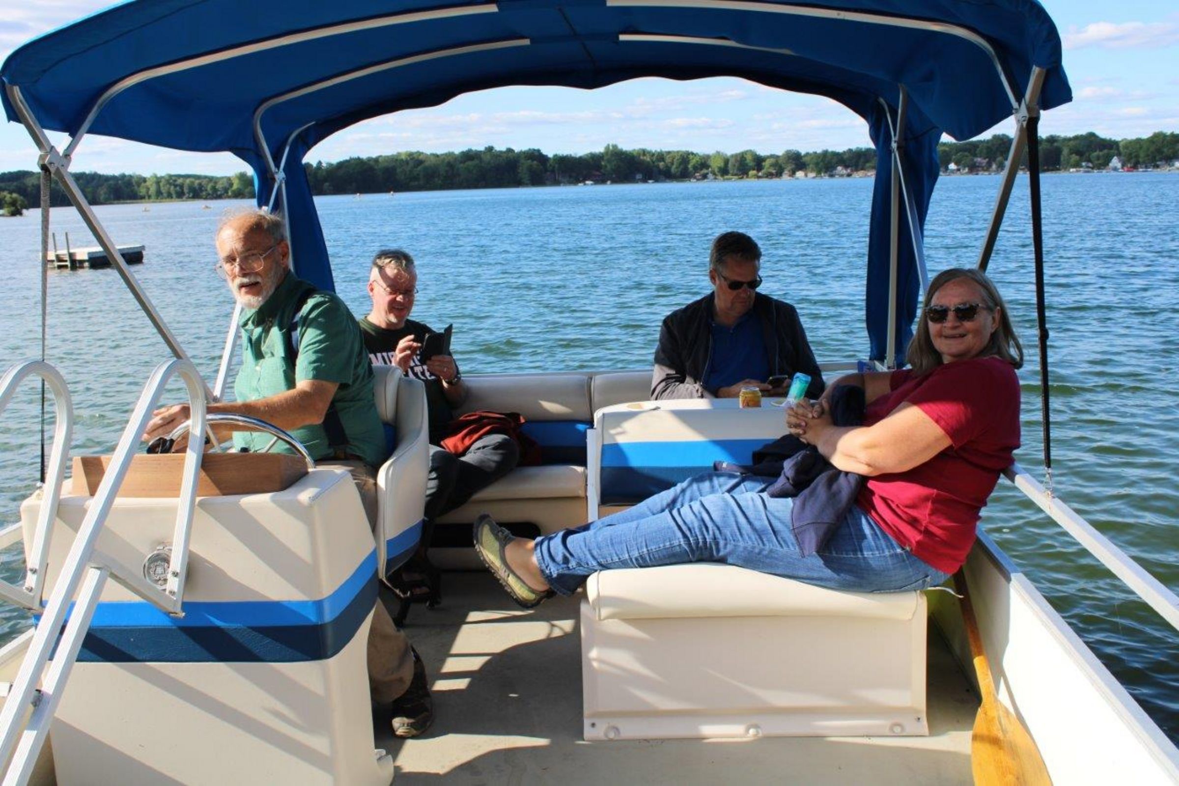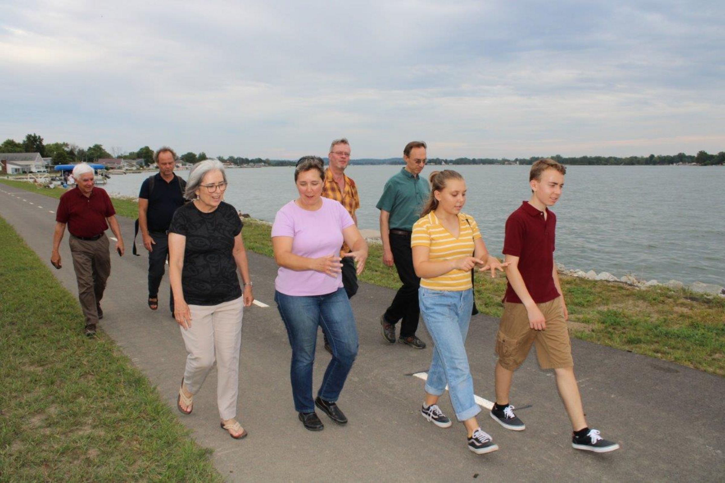 Mittags kommen wir an bei unseren Gastgebern: Familie Freytag, gut verbunden mit Wittenburgs Gemeinde. Ein gemeinsames Essen am Buckeyelake. Wir treffen den ehemaligen Pastor der St. Pauls-Gemeinde, Bill Rauch, und einige Gemeindeglieder. Anschließend wandern wir über den Damm des Sees, gerade restauriert. Ein wunderschönes Naherholungsgebiet – zum Angeln, Boot fahren, Schwimmen, Wandern, Feiern, Sehen und Gesehen werden. Überall die amerikanische Flagge, lustige Sprüche an den Häusern und private Sitzbänke am See.
