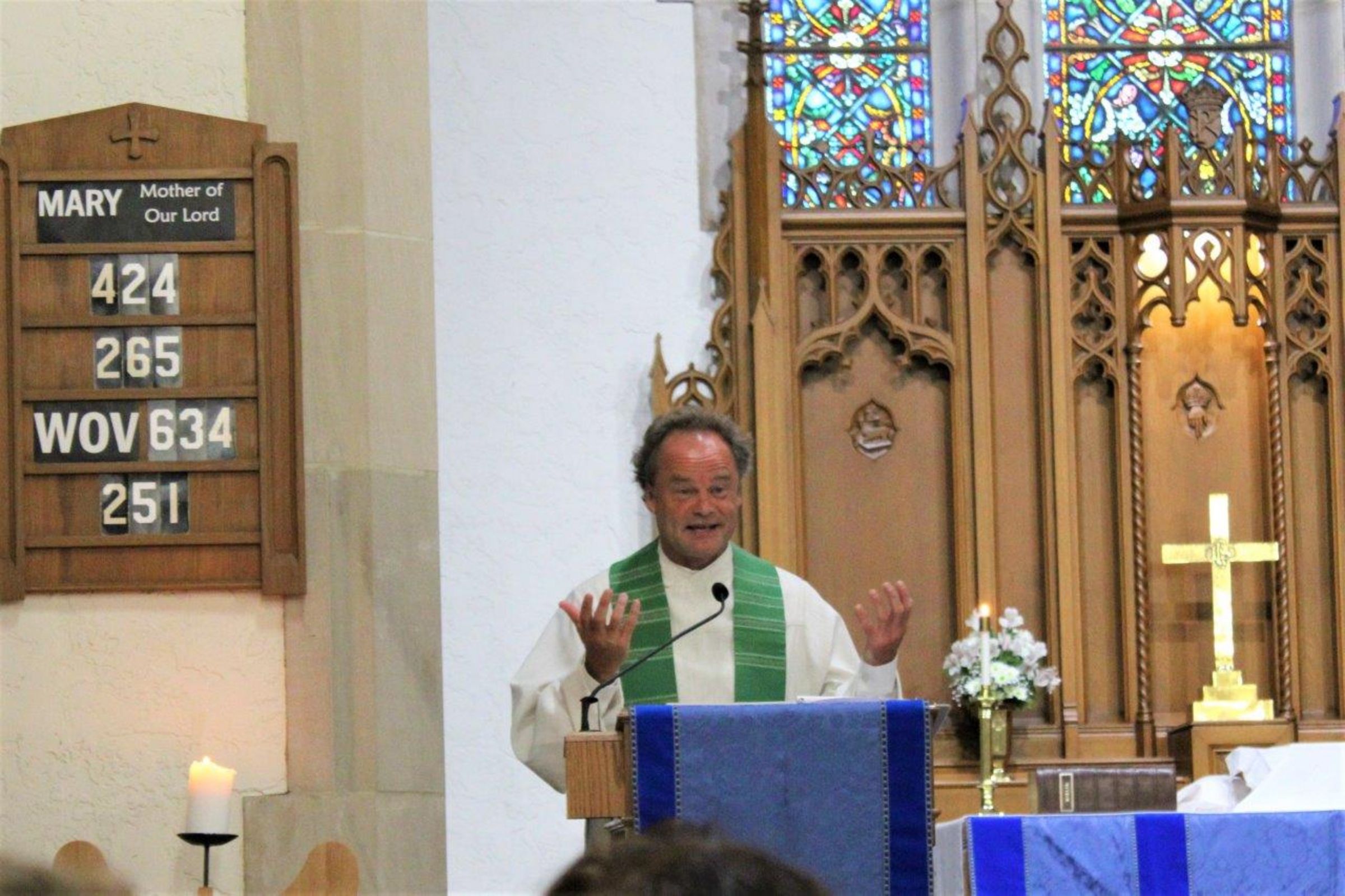 Sonntagmorgen 9.30 Uhr Newark St. Pauls. Gottesdienst mit viel Musik. Pastor Börgensen, schon über 80, vertritt heute die kranke Ortspastorin. Er hält auch singend und sprechend eine Kinderpredigt. Die Kinder sitzen dazu auf den Altarstufen vor der Gemeinde. Das Magnifikat der Maria taucht im Gemeindegesang auf. Maria, heute? Ach ja, Maria Himmelfahrt. „Meine Seele erhebt den Herren und mein Geist freut sich Gottes, meines Heilandes“. Maria singt so und hat guten Grund dafür. Wir alle haben Grund so zu singen. Warum? Ganz einfach - wir erzählen Euch in unserer Dialog-Predigt davon: