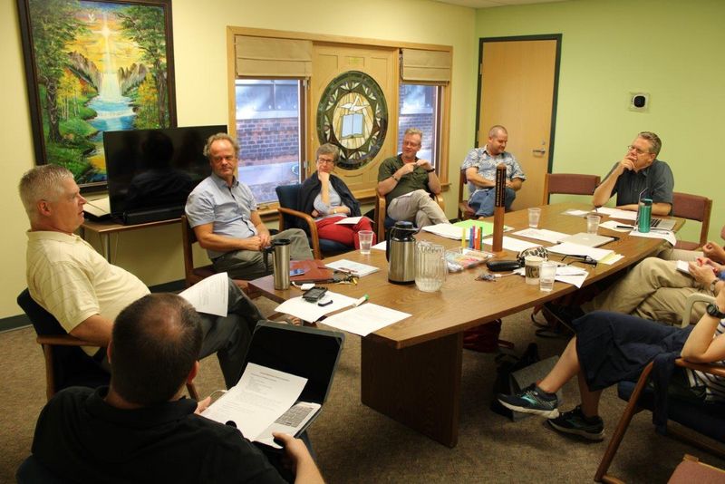 Wir haben uns für diesen ersten Tag vorgenommen, uns einander aus unseren Kirchen zu erzählen, - mit ihren geschichtlichen Hintergründen und ihren Herausforderungen nach innen und nach außen. Steve und Joshua starten mit der Ohio-Präsentation: Steve’s Gemeinde ist wie ein Mikrokosmos der USA. Alle politischen Spannungen finden sich auch hier. Denn Ohio ist ein Swingstate, im Moment etwas mehr Rot als Blau. Und Steve positioniert sich: Die normalerweise geltende vorsichtige Grundhaltung in der Gemeinde „keep politics out of church“ (Haltet die Politik aus der Kirche raus) ist nicht mehr hilfreich. Denn die Bibel ist voll von politischen Aussagen, - das wird im Moment mehr denn je bedeutsam. Hat Jesus doch gesagt: „Ich bringe Feuer“. In seiner oberen Mittelklasse-Gemeinde will er die politische Bedeutung von theologischen Begriffen wie Auferstehung, Heil hier und heute für jede und jeden und Gerechtigkeit nicht länger an der Kirchentür abgeben. Und es entsteht eine Überzeugung in der Gemeinde: Als lutherische Gemeinde wollen sie nicht länger in der Blase („Bubble“) bleiben, abgeschieden von den Themen der Welt, sondern mitten drin sein: Die „Mission“ ernstnehmen. Innenstadt-Projekte für Arme, Hilfe für Menschen, die umziehen müssen, bei der Arbeitssuche helfen. Und es geht um die großen Themen, die von der ELCA gesetzt werden: Homosexualität und Willkommenskultur für Geflüchtete. Einige Gemeinden halten das nicht aus und wandern ab, aber die meisten stehen überzeugt dahinter. Die Polarisierung in den Gemeinden muss überwunden werden, um in den Nachbarschaften helfen zu können. Die Schwierigkeit ist, dass es um eine Gratwanderung geht, wenn mehr politische Klarheit gewollt ist und zugleich die Menschen für die Gemeinde nicht verloren gehen sollen. Für die gemeindeinterne Kommunikation gibt es Spielregeln für die Kommunikation, damit das klappt, erzählt Steve, „ein Schwur für offene Forumsgespräche,“ der in einem Papier aufgeschrieben ist.