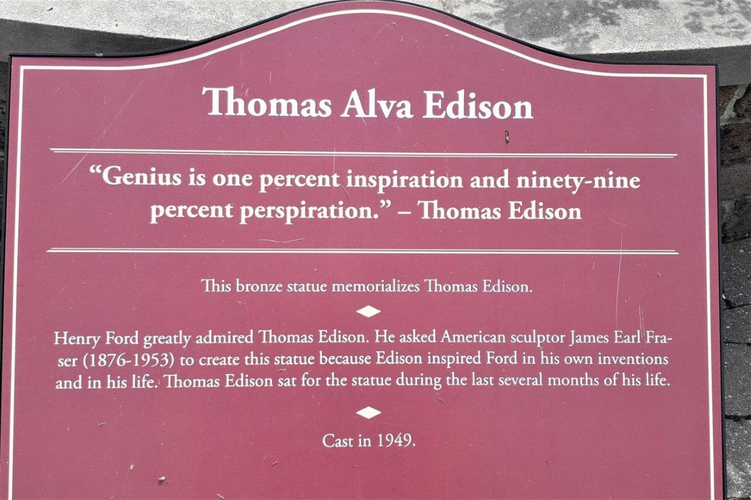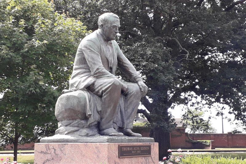 Im Jahr 1966 veröffentlichte der Verlag Neues Leben in der DDR das Buch „Der Zauberer Edison“ von István Száva. Meine Eltern kauften es mir und ich las es fast in einem Zuge durch. Faszinierend! Kennen Sie die Geschichte, wie er sich als Dreijähriger auf Hühnereier setzt, um sie auszubrüten? Nicht? Dann sollten Sie sich dieses Buch besorgen! – Heute, an unserem freien halben Tag, begegnen wir Edison auf Schritt und Tritt, denn wir sind für ein paar Stunden in den gewaltigen Komplex „The Henry Ford“ eingetaucht. Ein riesiges Museum in Dearborn bei Detroit. Amerikas größte historische Attraktion (sagt der Flyer). Ein Teil davon: Greenfield Village. 30 Hektar Gelände, mit vielen Gebäuden, Inventar, Denkmälern, Attraktionen aus der Gründerzeit Amerikas. Gleich am Eingang wartet die Dampflok. Natürlich heißt sie „Edison“. Schon an der nächsten Station steige ich erst mal aus. Teile des Menlo Parks, des Forschungslaboratoriums von Thomas Alva Edison sind hier aufgebaut. Staunend betrachte ich die drei Öfen, in denen unzählige Stifte aus Bambus, aus Holz und anderen Materialen luftdicht abgeschlossen verkohlt wurden, um das perfekte Material für die Glühbirne zu finden. Edisons Werkstätten sind zu sehen, ein Kraftwerk, das er gebaut hat, Büros, und so viele unglaubliche Erfindungen, auf denen unser normales Leben heute aufbaut. Am Ende des Rundgangs stehe ich vor seinem Denkmal. In den letzten Monaten seines Lebens hat er dafür Modell gesessen. Darunter ein Edison-Zitat: „Genie ist 1 Prozent Inspiration und 99 Prozent Schweiß.“ Aber freilich - ohne dieses eine Prozent geht es auch nicht, denke ich, und er hatte es!
