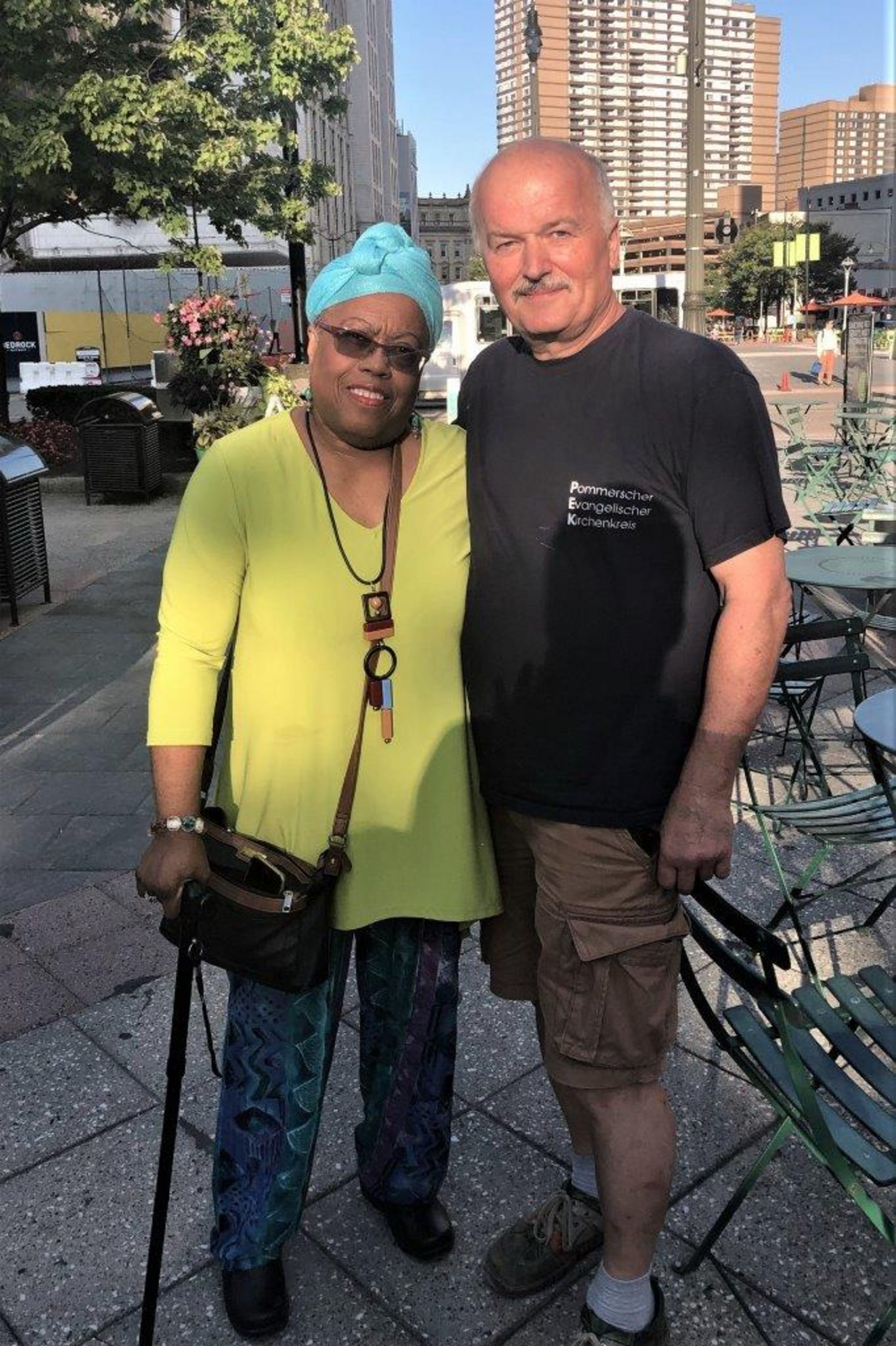 Zum Abendessen dann eine weitere interessante und informative Begegnung mit Conference Minister Dr. Campbell Lovett, dem leitenden Geistlichen der Michigan Conference der United Church of Christ in den USA. Das ist die Partnerkirche, die durch Pommern in die Nordkirche eingebracht wurde. Lovett berichtet von 138 Gemeinden, die zu seiner Kirche gehören – mit gut 30.000 Mitgliedern. Für Matthias Tuve gibt es das Wiedersehen mit Akua Budu Watkins, die 2017 in Pommern am Ökumenischen Kirchentag in Greifswald teilgenommen hat.