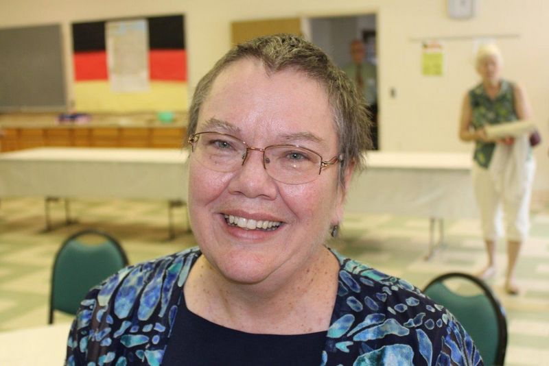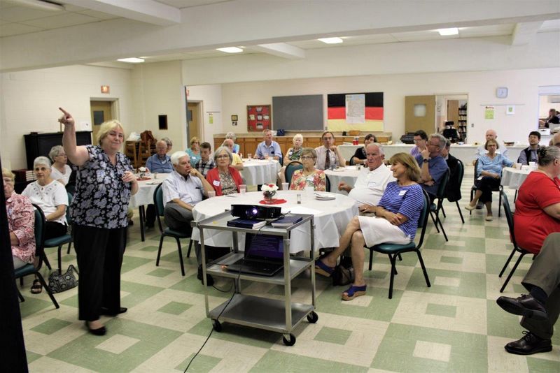 Nach dem Gottesdienst haben wir ein Treffen mit dem church council, dem Kirchengemeinderat, und anderen Gemeindegliedern. Gut 35- 40 sind geblieben, um nach dem Gottesdienst gemeinsam mit uns zu essen und über die Aufgaben der Gemeinde zu diskutieren. Denise Crews, Mitarbeiterin in der Stadtverwaltung Lancaster, leitet eine Diskussion über Aufgaben - „mission of our church“ - in der Gemeinde ein.