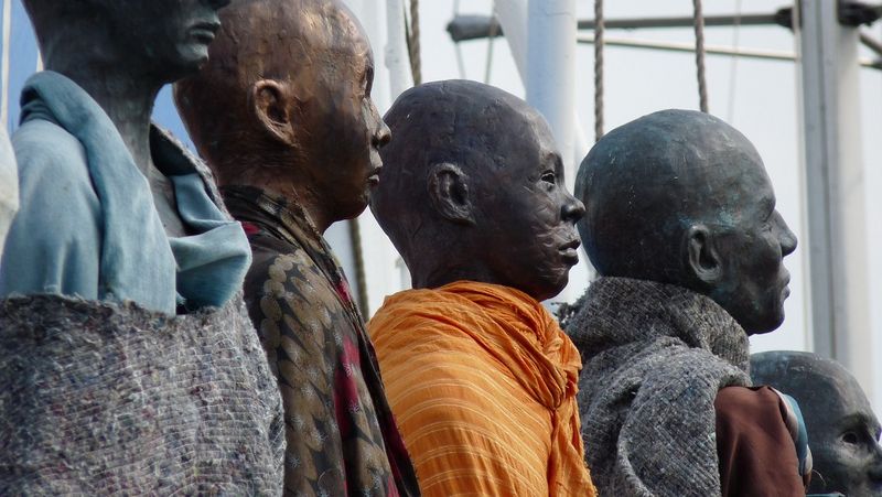 Während der Warnemünder Woche (4. bis 12. Juli) lag das Flüchtlingsboot MS Anton vertäut am Alten Strom. Mit 70 lebensgroßen Skulpturen, auf dem Schiff installiert, macht der dänische Künstler Jens Galschiøt auf die Situation von Flüchtlingen aufmerksam: wortlos und doch vielsagend. Hunderte von Menschen gingen, wie immer im Sommer, hier vorbei auf dem Weg zum und vom Strand, beim Flanieren und Bummeln. Das Schiff mit seinen Skulpturen war nicht zu übersehen in seiner Eindrücklichkeit. Viele schauten, schauten weg, schauten wieder hin, kamen später noch mal vorbei; manche erkundigten sich, wollten mehr wissen über die fremden Gestalten, die da an Bord zu sehen waren. Selten habe ich das Thema "Flucht und Flüchtlinge" so eindrucksvoll vor Augen geführt bekommen wie hier.