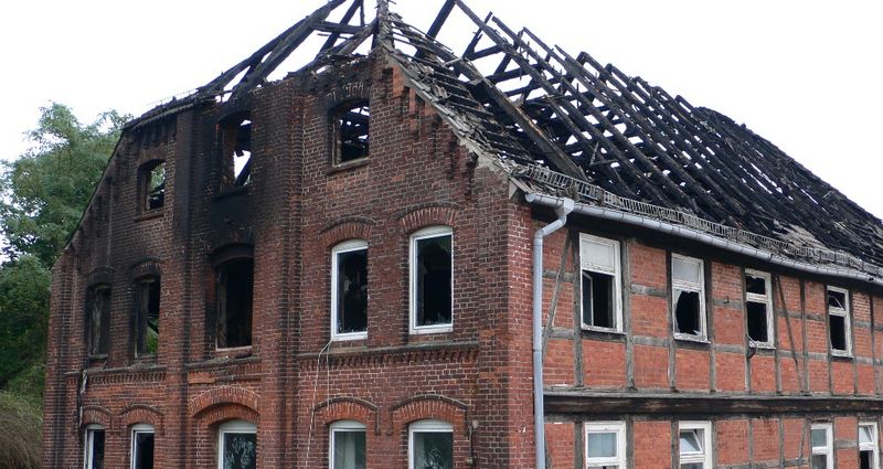 Die Überschrift in der Schweriner Volkszeitung traf buchstäblich ins Schwarze. In der Nacht auf den 12. Oktober ist in Boizenburg an der Elbe ein Fachwerkhaus abgebrannt, das als Notunterkunft für 40 syrische Flüchtlinge dienen sollte. Die Feuerwehr konnte den Brand nach Stunden löschen, aber das Haus ist nicht mehr benutzbar. Gespenstisch steht die Brandruine nun da mit dem verkohlten Gebälk und den zerborstenen Scheiben. Es riecht beißend nach Ruß, wenn man näher kommt. Mittlerweile steht fest: es war Brandstiftung.