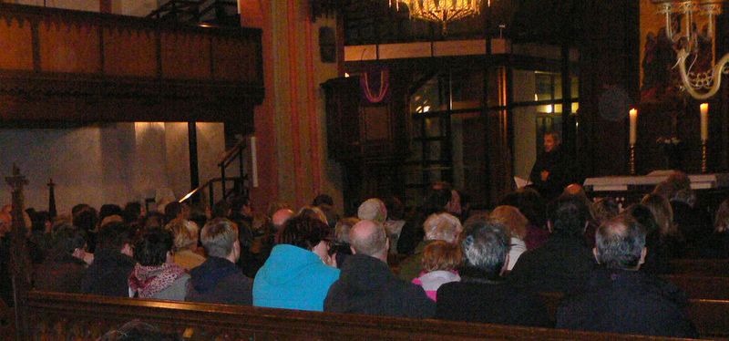 Ein weiteres Gefühl kommt in diesem November deutlich auf: Angst. Ich war in den letzten Tagen bei zwei Friedensgebeten dabei, in Grevesmühlen und in Boizenburg. In beiden Kirchengemeinden war der Zusammenhang klar: Es sollte ein Zeichen gesetzt werden gegen braune Feindschaft gegenüber Fremden und Flüchtlingen; gegen gewalttätige Übergriffe auf sie; gegen das Anzünden von Wohnhäusern. Gestern, am 9. November, hatte die Stadtverordnetenversammlung in Boizenburg das Gedenken in der Kirche genutzt, um eine entsprechende Resolution zu verabschieden. Während des Friedensgebets war Gelegenheit, nach vorne ans Mikrofon zu gehen, mit einem persönlichen Wort 'sich zu zeigen' und eine Kerze anzuzünden. Für mich war das der wichtigste Teil der Zusammenkunft.