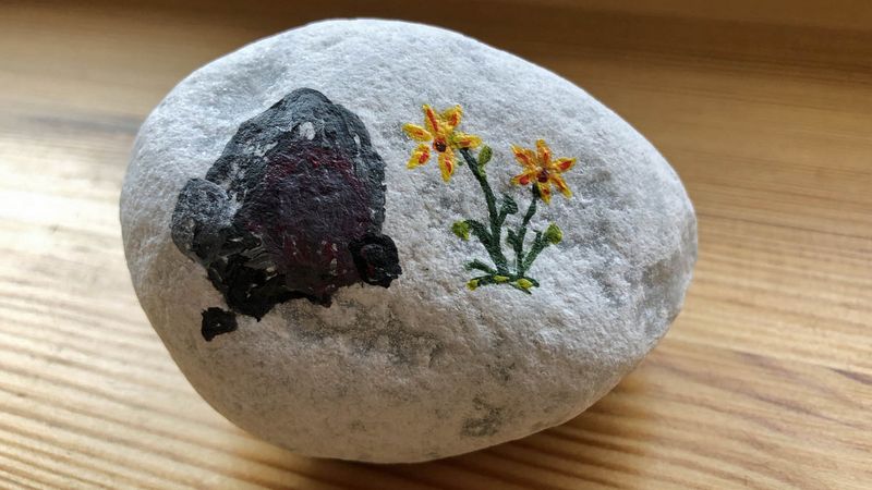 Zwischen Karfreitag und Ostern habe ich meinen Osterstein schon gefunden. Zarte Blume sind darauf gemalt, weil Gottes großer Garten mir besonders jetzt im Frühling unendlich viel Freude macht. Neben der Blume ist auf dem Stein ein kleiner Felsen gemalt. Es ist nicht nur alles Freude im Augenblick. Es gibt auch manche Steine, die uns an diesem Ostern auf dem Herzen liegen. „Wie schwer sind für mich, Gott, deine Gedanken! Wie ist ihre Summe so groß!“, sagt der Psalmbeter. Auch Gott ist manchmal in seinem Handeln und in seinen Gedanken für uns nicht zu verstehen. Das haben auch die Frauen am Ostermorgen erfahren. Es ist Dunkel und Finster, und Gott ist in diesem Dunkel des verschlossenen Grabes verborgen, nicht zu begreifen, nicht zu fassen.