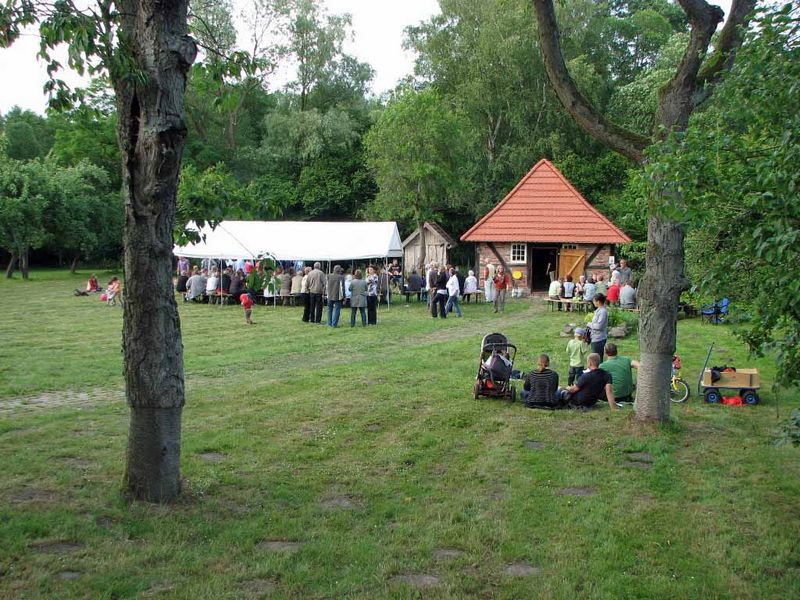 Im September 2005 haben wir mit den Sanierungsarbeiten am Backhaus im Cramoner Pfarrgarten begonnen. Damals träumten wir nur von einem Backhaus mit Backofen. Vorrangig sollte das Gebäude vor dem Verfall gerettet werden. Dank vieler freiwilliger Helfer, Spenden von Privatpersonen, Firmen und Stiftungen und der Förderung durch das Staatliche Amt für Umwelt und Natur mit EU-Mitteln gelang die Fertigstellung im Juni 2008.