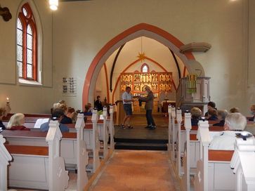 Zahlreiche Gäste, besonders viele Familien mit Kindern,waren in die Pfarrscheune gekommen. Unseren Gemeindepädagogen, Agnes Kreutzberg und Konstantin Manthey, gelang es bestens, den Gottesdienst interessant und adventlich zu leiten. Unsere Jugendband "Rückkopplung" sowie Mädchen und Jungen vom VHS Kindertreff der Lübstorfer Regionalschule präsentierten Lieder zum Mitsingen oder führten mit ihren engelsgleichen Kostümen kleine Tänze vor. Sie selbst brachten mit ihren Kerzen Licht in die Scheune, als Zeichen, dass wir alle Lichtbringer sind und verteilten Kerzen an die Anwesenden. Agnes Kreutzberg erinnerte dabei an die Heilige Lucia, die vor mehr als 1000 Jahren verfolgte Christen aus Sizilien versorgte. Nach dem Gottesdienst gab es Dank vieler fleißigen Helferinnen und Helfer ein schmackhaftes Mittagessen. Schön war es, dass sich Jung und Alt zusammensetzten und ins Gespräch kamen.