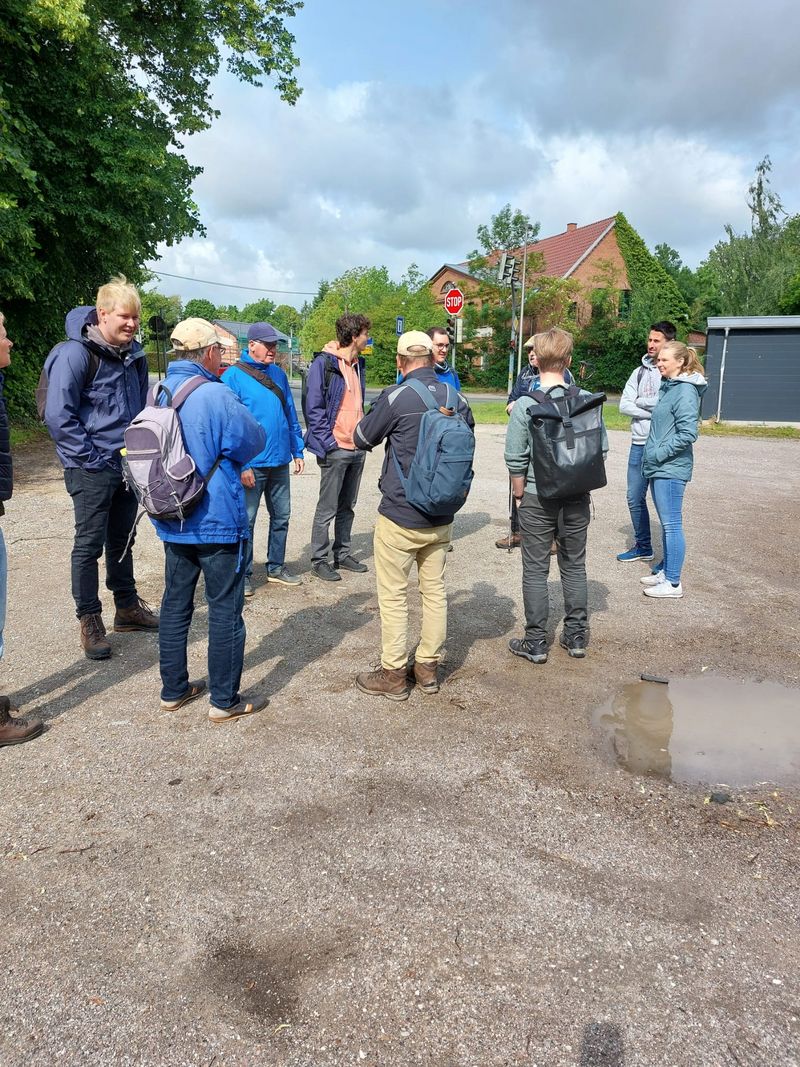Mittagspause im Pfarrgarten von Cramon am alten Backhaus. Halbzeit, die ersten Schuhe werden gelüftet. Weiter gehts auf die Etappe nach Böken.