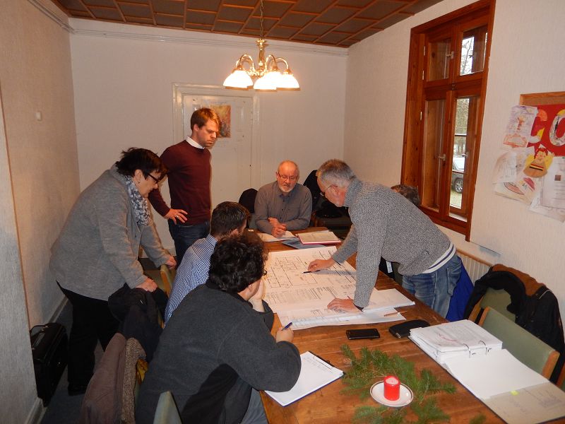 Regelmäßig treffen sich der Architekt, Ulf Kötzing, weitere Baufachleute, Kirchenälteste, Vorstandsmitglieder vom Förderverein und Pastor Seefeld zu Bauberatungen. Die Planungen sind gut voran gekommen. Im Januar/Februar sollen die Gewerke öffentlich ausgeschrieben werden.