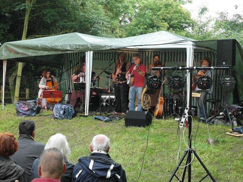 Pünktlich um 19.30 Uhr hörte der Regen auf und die Sonne begrüßte die dann doch zahlreich eintrudelnden Zuschauer. Mit schwungvollen Klängen aus den verschiedensten Kulturen unserer Erde führte "Hilde's Dorforchester" uns durch ein buntes musikalisches Programm, das auch zu Mittanzen verleitete.