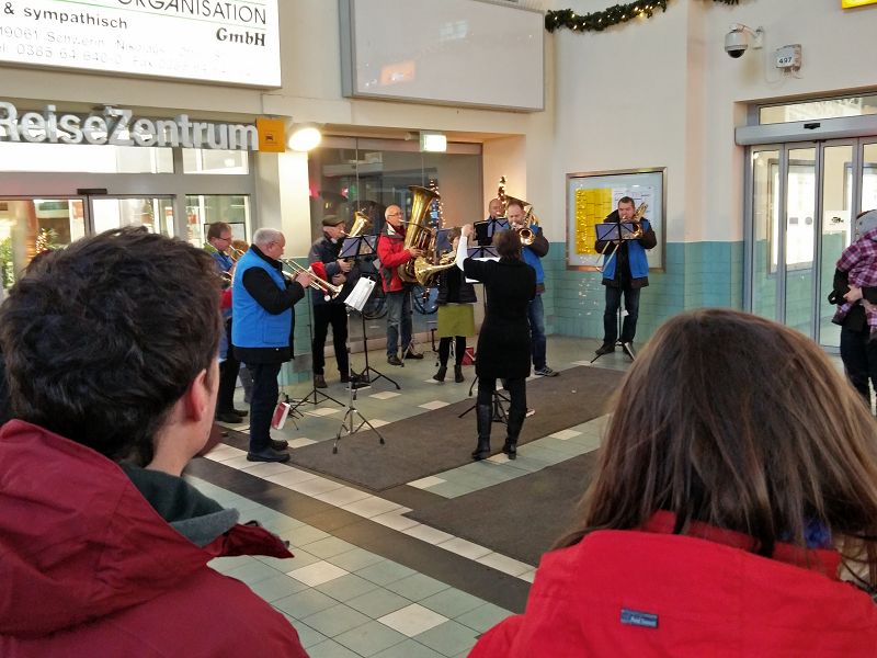 ....und im Hauptbahnhof empfangen die Reisenden - Ankommende wie Abfahrende - weihnachtliche Weisen, gespielt von unserem Bläserchor. Ob "Es ist ein Ros entsprungen" oder "Let It Snow" - viele Menschen blieben stehen und summten die Melodie mit. Ein herzlicher Gruß zum Weihnachtsfest.