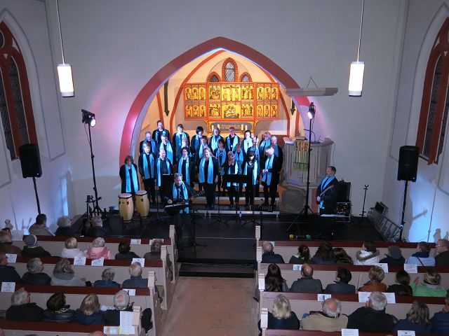 Die 20 Frauen und 2 Männer von Spirit Of Joy sangen Gospels in einer Bandbreite von besinnlich bis mitreißend, wobei den Akteuren stets die Freude am Singen und am Lob Gottes anzumerken war. Die etwa 90 Zuhörer dankten es ihnen mit viel Beifall.