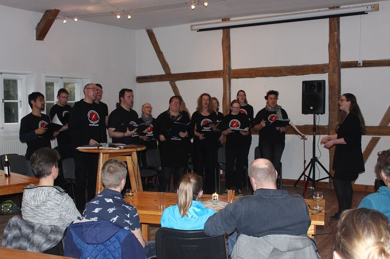 Es waren klassische Adventslieder wie "Macht hoch die Tür" und "Es ist ein Ros entsprungen" im Gesangswechsel mit der Gemeinde aber auch wunderbare Chorlieder von Crüger, Mozart, Walz, Händel u. a. zu hören.