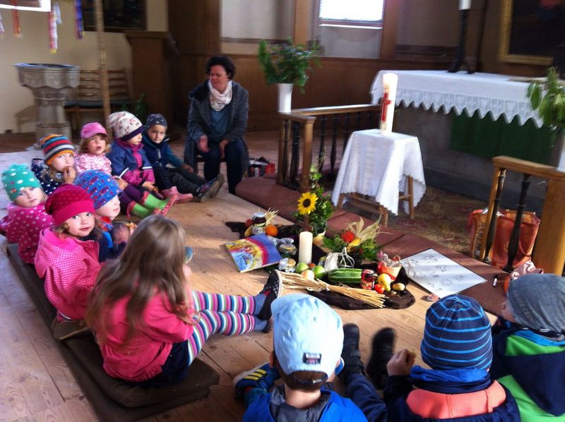 Ein interessanter Ausflug für die Kinder des Zickhusener Kindergartens: Gemeindepädagogin Agnes Kreutzberg zeigt ihnen die Kirche und erklärt das bevorstehende Erntedankfest.