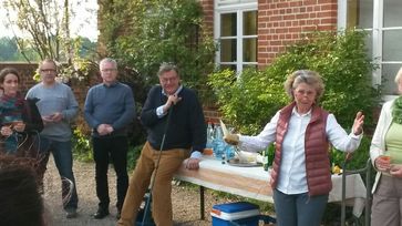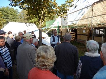 Der Förderverein als Ausrichter stellte die Pfarrscheune, die künftige Hörspiel-Scheune in den Mittelpunkt der Veranstaltung. Einige Besucher folgten schon am Vormittag den Erklärungen von Ulf Kötzing, der als leitender Bauingenieur das Projekt erstellt hat und jetzt begleitet. Bis in den frühen Abend fanden viele Besucher den Weg bei schönstem Sommerwetter in den Pfarrgarten zu Kaffee und Kuchen oder einer Leckerei vom Grill. Insgesamt kamen nach Angaben des Vereins rund 120 Frauen und Männer.