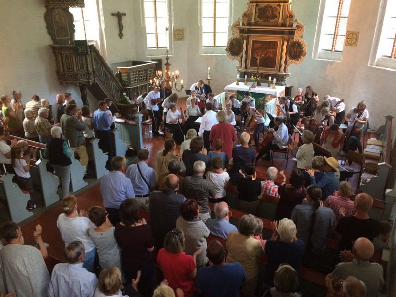 Wenige Tage vor der Sommersonnenwende lud der Förderverein der Trebbower Kirche wieder zu einem Sommer-Konzert und über 140 Gäste kamen, um den Musikern der BDLO-Orchesters zuzuhören! BDLO - Ein großartiges generationsübergreifendes Projekt - was heisst das? Wolfgang Friedrich, Dirigent und Leiter klärte auf: Bundesverband Deutscher Liebhaber Orchester e.V., bestehend aus Musikern von 10 - 80 Jahren, die nicht professionell, sondern aus reiner Freude am Musizieren sich zu diesem BDLO-Orchester MV/Schwerin jährlich neu zusammenfinden. Und diesen Spaß spürte das Publikum!